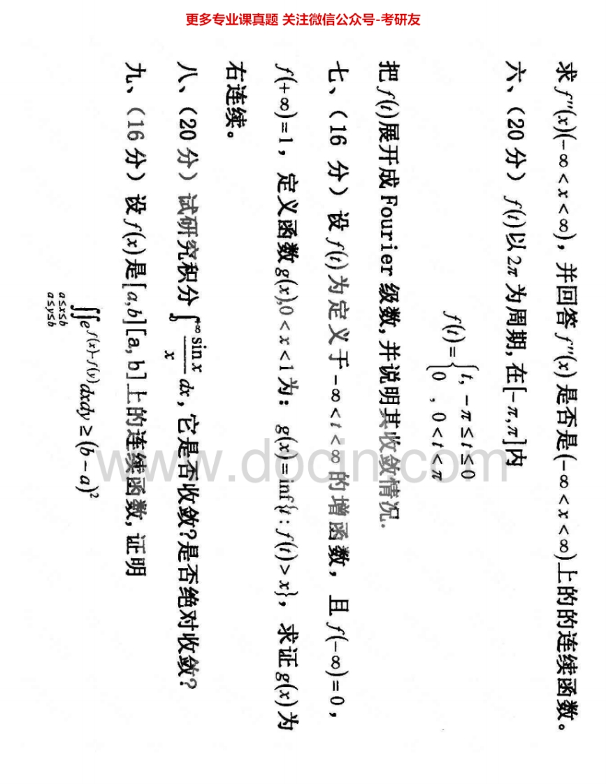 中央民族大学638数学分析2005-2006考研真题汇编猴哥6个月前发布关注私信0.95MB3页05238中央民族大学638数学分析2005-2006考研真题汇编此内容为免费资源,请登录后查看¥0 登录查看免费资源 第1页 / 共3页 第2页 / 共3页 第3页 / 共3页 已完成全部阅读,共3页 © 版权声明文章版权归作者所有,未经允许请勿转载。THE END《中央民族大学》(638)数学分析考研资料考研专业课 喜欢就支持一下吧点赞38赞赏 分享QQ空间微博QQ好友海报分享复制链接收藏