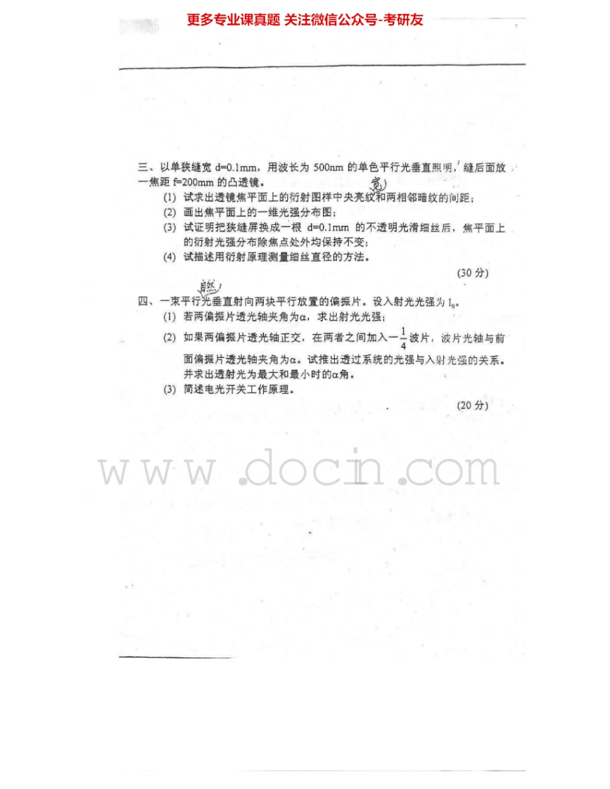 重庆大学834基础光学2002-2004考研真题汇编猴哥6个月前发布关注私信2.65MB6页09733重庆大学834基础光学2002-2004考研真题汇编此内容为免费资源,请登录后查看¥0 登录查看免费资源 第1页 / 共6页 第2页 / 共6页 第3页 / 共6页 该文档为免费文档,您可直接下载完整版进行阅读 © 版权声明文章版权归作者所有,未经允许请勿转载。THE END《重庆大学》(834)基础光学考研资料考研专业课 喜欢就支持一下吧点赞33赞赏 分享QQ空间微博QQ好友海报分享复制链接收藏