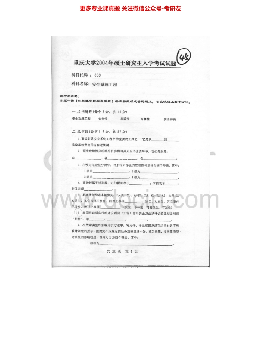 重庆大学866安全系统工程2003-2014考研真题汇编猴哥6个月前发布关注私信7.42MB28页03151重庆大学866安全系统工程2003-2014考研真题汇编此内容为免费资源,请登录后查看¥0 登录查看免费资源 第1页 / 共28页 第2页 / 共28页 第3页 / 共28页 该文档为免费文档,您可直接下载完整版进行阅读 © 版权声明文章版权归作者所有,未经允许请勿转载。THE END《重庆大学》(866)安全工程专业课考研资料考研专业课 喜欢就支持一下吧点赞51赞赏 分享QQ空间微博QQ好友海报分享复制链接收藏