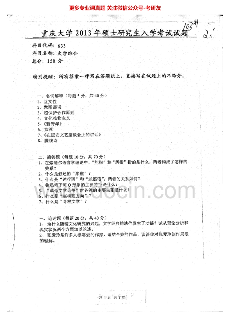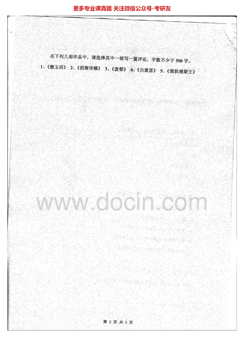 重庆大学文学综合历年真题文学综合2012-2013文化语言学2012考研真题汇编猴哥6个月前发布关注私信1.65MB4页09261重庆大学文学综合历年真题文学综合2012-2013文化语言学2012考研真题汇编此内容为免费资源,请登录后查看¥0 登录查看免费资源 第1页 / 共4页 第2页 / 共4页 第3页 / 共4页 该文档为免费文档,您可直接下载完整版进行阅读 © 版权声明文章版权归作者所有,未经允许请勿转载。THE END考研专业课 喜欢就支持一下吧点赞61赞赏 分享QQ空间微博QQ好友海报分享复制链接收藏