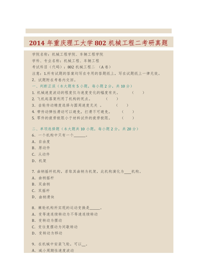 重庆理工大学803机械工程二(含机械原理机械设计)[专业硕士]历年考研真题汇编猴哥6个月前发布关注私信0.43MB34页07031重庆理工大学803机械工程二(含机械原理机械设计)[专业硕士]历年考研真题汇编此内容为免费资源,请登录后查看¥0 登录查看免费资源 第1页 / 共34页 第2页 / 共34页 第3页 / 共34页 该文档为免费文档,您可直接下载完整版进行阅读 © 版权声明文章版权归作者所有,未经允许请勿转载。THE END《重庆理工大学》(803)工业工程(含系统工程学与基础工业工程)考研资料考研专业课 喜欢就支持一下吧点赞31赞赏 分享QQ空间微博QQ好友海报分享复制链接收藏