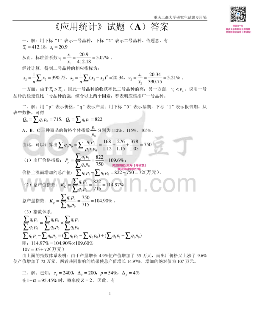 重庆工商大学802应用统计学2007、2009-2015其中2007有部分答案考研真题汇编猴哥6个月前发布关注私信1.61MB22页04645重庆工商大学802应用统计学2007、2009-2015其中2007有部分答案考研真题汇编此内容为免费资源,请登录后查看¥0 登录查看免费资源 第1页 / 共22页 第2页 / 共22页 第3页 / 共22页 该文档为免费文档,您可直接下载完整版进行阅读 © 版权声明文章版权归作者所有,未经允许请勿转载。THE END《重庆工商大学》(802)应用统计学考研资料考研专业课 喜欢就支持一下吧点赞45赞赏 分享QQ空间微博QQ好友海报分享复制链接收藏