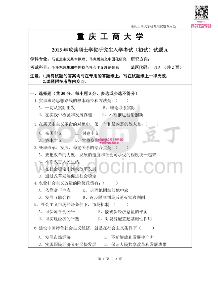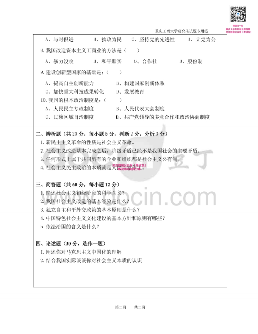 重庆工商大学804毛泽东思想和中国特色社会主义理论体系2012-2015考研真题汇编猴哥6个月前发布关注私信0.81MB10页04156重庆工商大学804毛泽东思想和中国特色社会主义理论体系2012-2015考研真题汇编此内容为免费资源,请登录后查看¥0 登录查看免费资源 第1页 / 共10页 第2页 / 共10页 第3页 / 共10页 该文档为免费文档,您可直接下载完整版进行阅读 © 版权声明文章版权归作者所有,未经允许请勿转载。THE END《重庆工商大学》(804)马克思主义中国化考研资料考研专业课 喜欢就支持一下吧点赞56赞赏 分享QQ空间微博QQ好友海报分享复制链接收藏