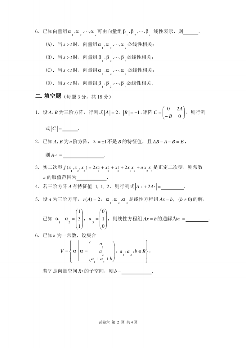线性代数试题库及答案27页猴哥6个月前发布关注私信1.53MB27页08543线性代数试题库及答案27页此内容为免费资源,请登录后查看¥0 登录查看免费资源已售 300 第1页 / 共27页 第2页 / 共27页 第3页 / 共27页 第4页 / 共27页 第5页 / 共27页 该文档为免费文档,您可直接下载完整版进行阅读 © 版权声明文章版权归作者所有,未经允许请勿转载。THE END《线性代数》学习资料合集 期末复习 喜欢就支持一下吧点赞43赞赏 分享QQ空间微博QQ好友海报分享复制链接收藏