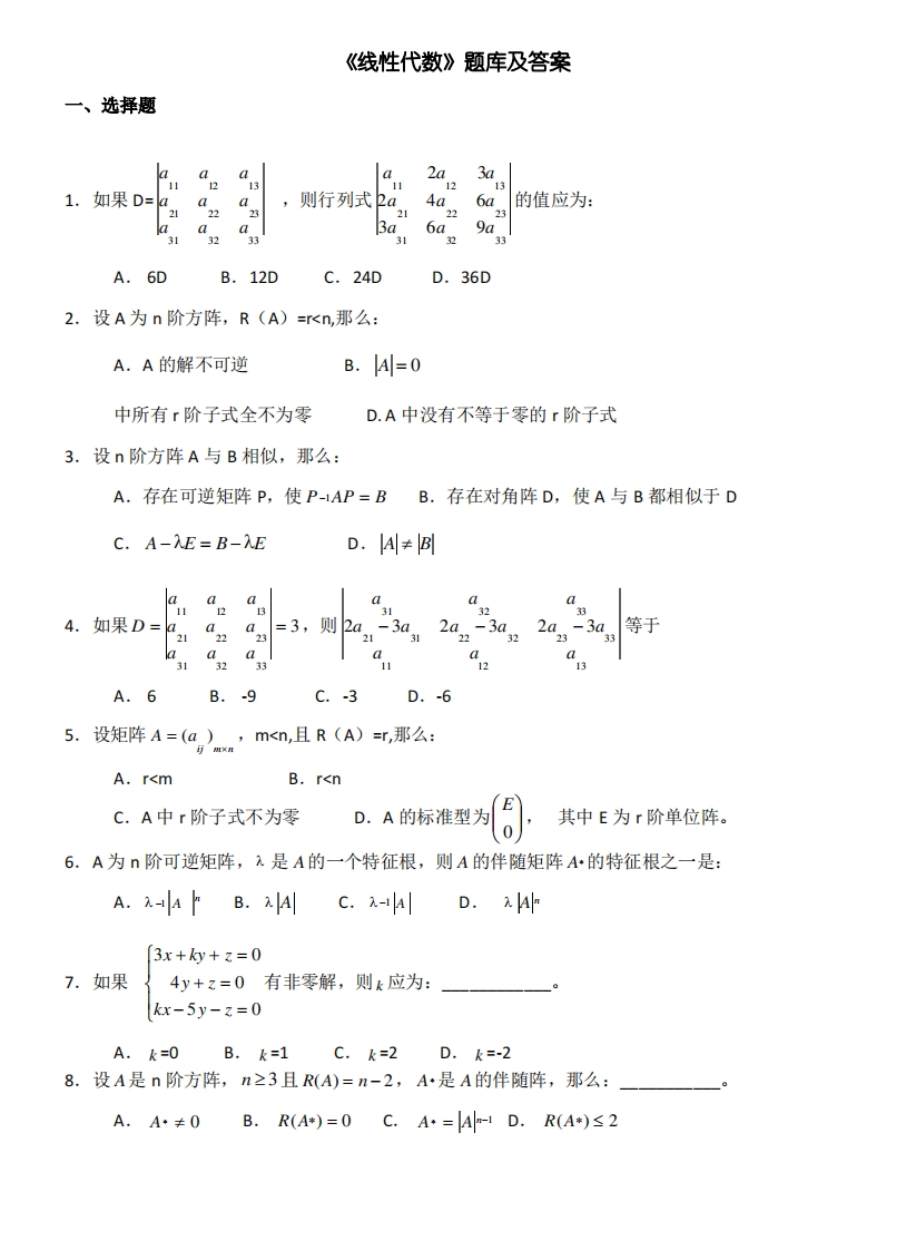 《线性代数》题库及答案猴哥6个月前发布关注私信0.77MB13页09117《线性代数》题库及答案此内容为免费资源,请登录后查看¥0 登录查看免费资源已售 300 第1页 / 共13页 第2页 / 共13页 第3页 / 共13页 第4页 / 共13页 第5页 / 共13页 该文档为免费文档,您可直接下载完整版进行阅读 © 版权声明文章版权归作者所有,未经允许请勿转载。THE END《线性代数》学习资料合集 期末复习 喜欢就支持一下吧点赞17赞赏 分享QQ空间微博QQ好友海报分享复制链接收藏