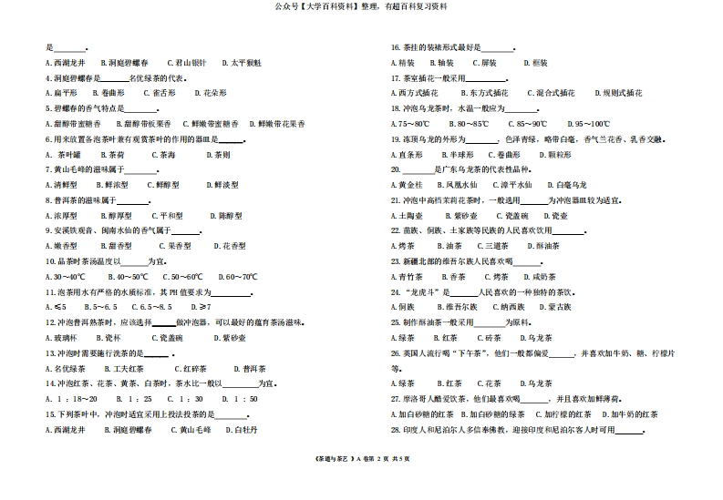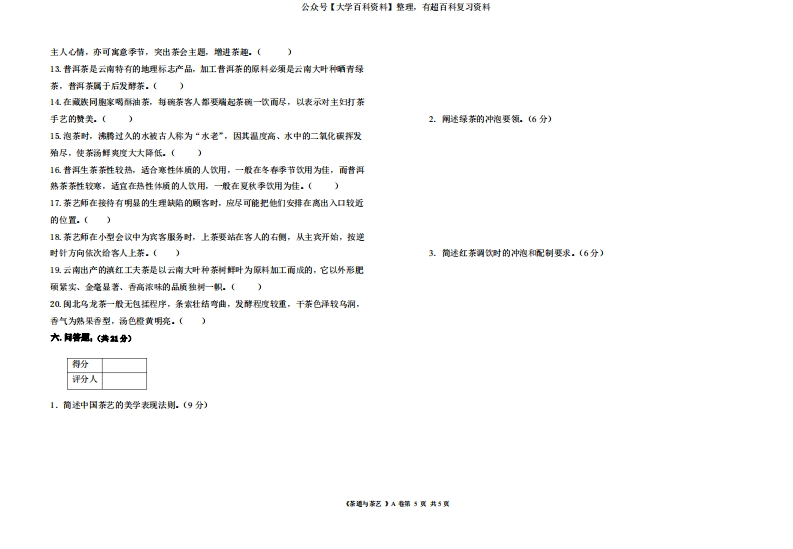 茶道与茶艺期末试卷A卷附答案猴哥6个月前发布关注私信0.47MB7页03112茶道与茶艺期末试卷A卷附答案此内容为免费资源,请登录后查看¥0 登录查看免费资源 第1页 / 共7页 第2页 / 共7页 第3页 / 共7页 第4页 / 共7页 第5页 / 共7页 该文档为免费文档,您可直接下载完整版进行阅读 © 版权声明文章版权归作者所有,未经允许请勿转载。THE END《茶艺与茶道》学习资料合集期末复习 喜欢就支持一下吧点赞12赞赏 分享QQ空间微博QQ好友海报分享复制链接收藏
