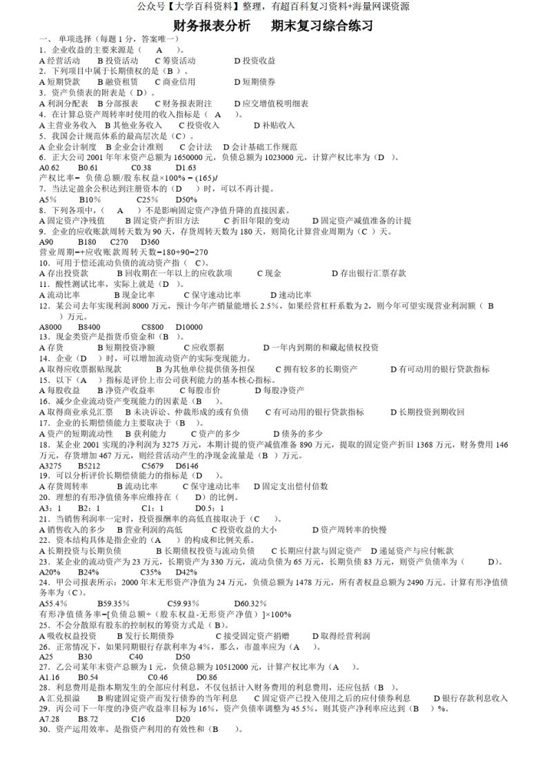 财务报表分析-期末考试复习题猴哥6个月前发布关注私信4.95MB26页04819财务报表分析-期末考试复习题此内容为免费资源,请登录后查看¥0 登录查看免费资源 第1页 / 共26页 第2页 / 共26页 第3页 / 共26页 第4页 / 共26页 第5页 / 共26页 该文档为免费文档,您可直接下载完整版进行阅读 © 版权声明文章版权归作者所有,未经允许请勿转载。THE END《财务报表分析》学习资料合集期末复习 喜欢就支持一下吧点赞19赞赏 分享QQ空间微博QQ好友海报分享复制链接收藏