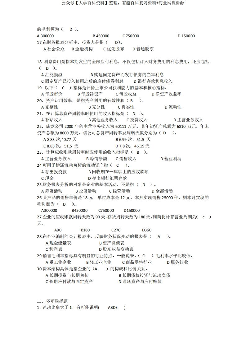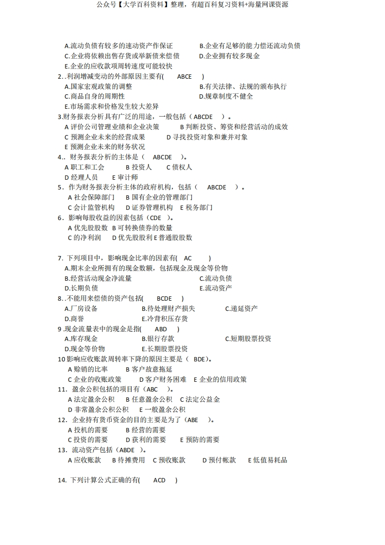财务报表分析期末复习题猴哥6个月前发布关注私信0.28MB6页03011财务报表分析期末复习题此内容为免费资源,请登录后查看¥0 登录查看免费资源 第1页 / 共6页 第2页 / 共6页 第3页 / 共6页 第4页 / 共6页 第5页 / 共6页 该文档为免费文档,您可直接下载完整版进行阅读 © 版权声明文章版权归作者所有,未经允许请勿转载。THE END《财务报表分析》学习资料合集期末复习 喜欢就支持一下吧点赞11赞赏 分享QQ空间微博QQ好友海报分享复制链接收藏