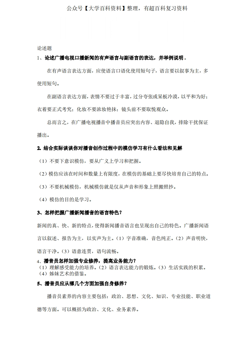 播音学概论.复习题猴哥6个月前发布关注私信0.15MB3页07656播音学概论.复习题此内容为免费资源,请登录后查看¥0 登录查看免费资源 第1页 / 共3页 第2页 / 共3页 第3页 / 共3页 已完成全部阅读,共3页 © 版权声明文章版权归作者所有,未经允许请勿转载。THE END《播音学概论》学习资料合集期末复习 喜欢就支持一下吧点赞56赞赏 分享QQ空间微博QQ好友海报分享复制链接收藏