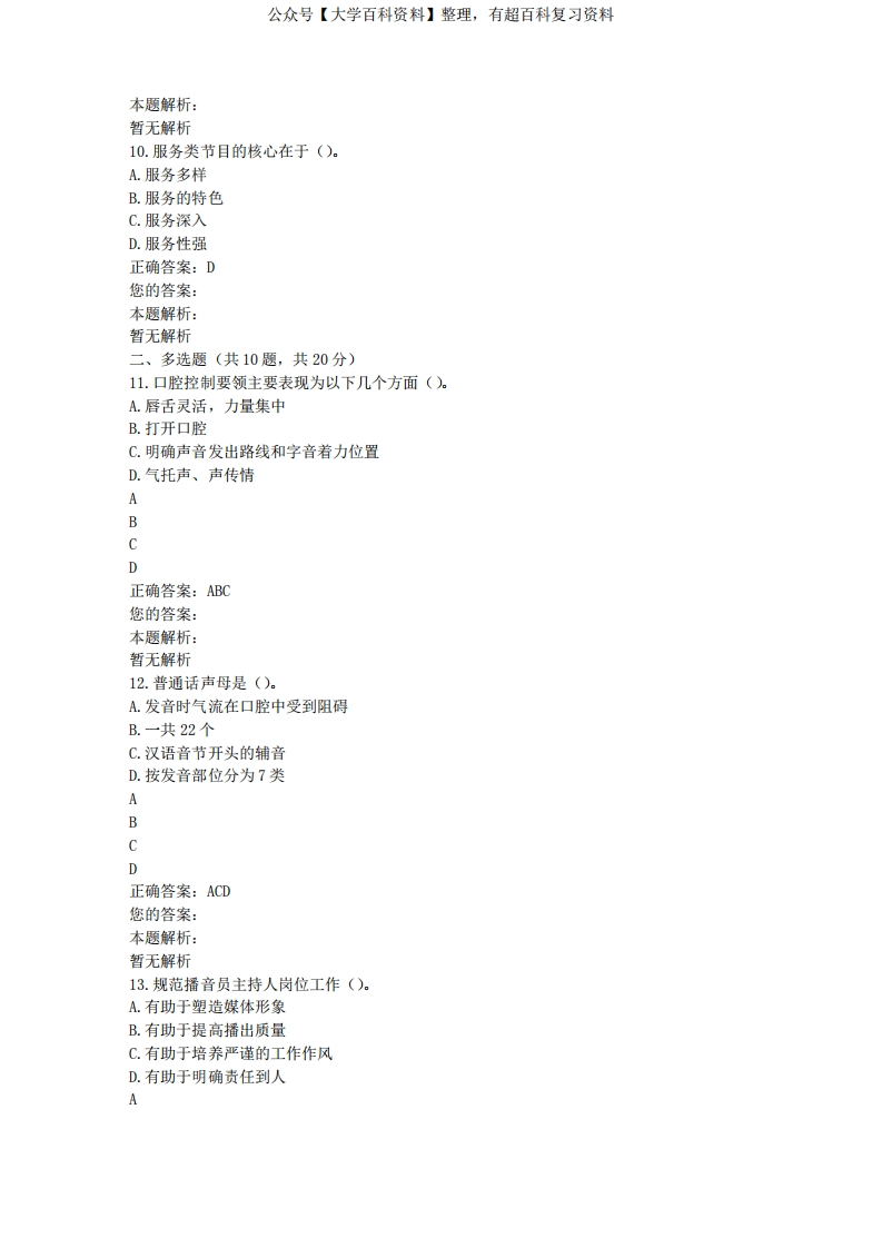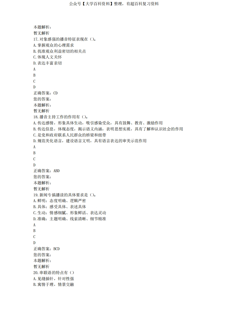 播音主持业务(笔试)练习题及答案(一)猴哥6个月前发布关注私信0.13MB5页08049播音主持业务(笔试)练习题及答案(一)此内容为免费资源,请登录后查看¥0 登录查看免费资源 第1页 / 共5页 第2页 / 共5页 第3页 / 共5页 第4页 / 共5页 第5页 / 共5页 已完成全部阅读,共5页 © 版权声明文章版权归作者所有,未经允许请勿转载。THE END《播音主持创作基础》学习资料合集期末复习 喜欢就支持一下吧点赞49赞赏 分享QQ空间微博QQ好友海报分享复制链接收藏