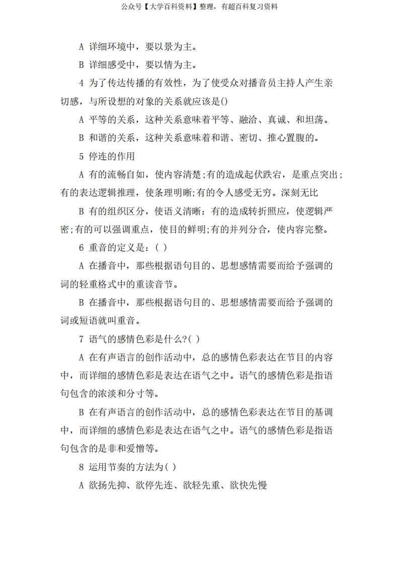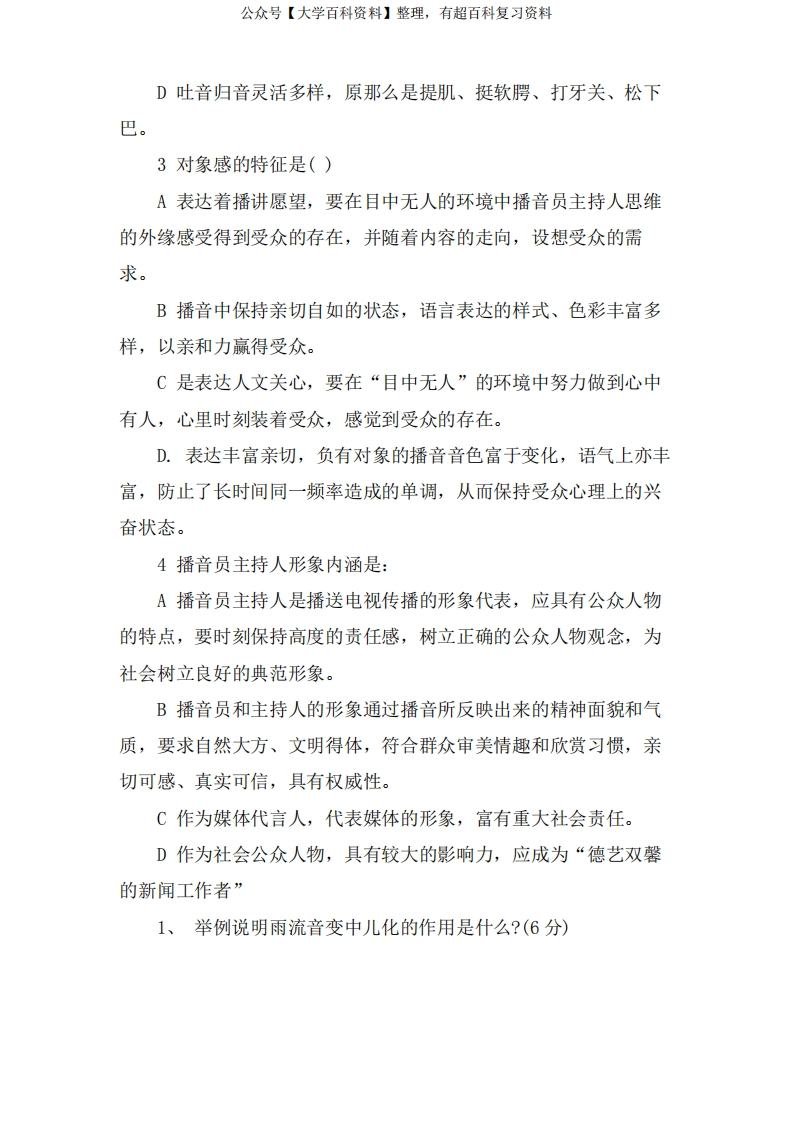 播音主持考试模拟试题附答案猴哥6个月前发布关注私信0.27MB7页05833播音主持考试模拟试题附答案此内容为免费资源,请登录后查看¥0 登录查看免费资源 第1页 / 共7页 第2页 / 共7页 第3页 / 共7页 第4页 / 共7页 第5页 / 共7页 该文档为免费文档,您可直接下载完整版进行阅读 © 版权声明文章版权归作者所有,未经允许请勿转载。THE END《播音主持创作基础》学习资料合集期末复习 喜欢就支持一下吧点赞33赞赏 分享QQ空间微博QQ好友海报分享复制链接收藏