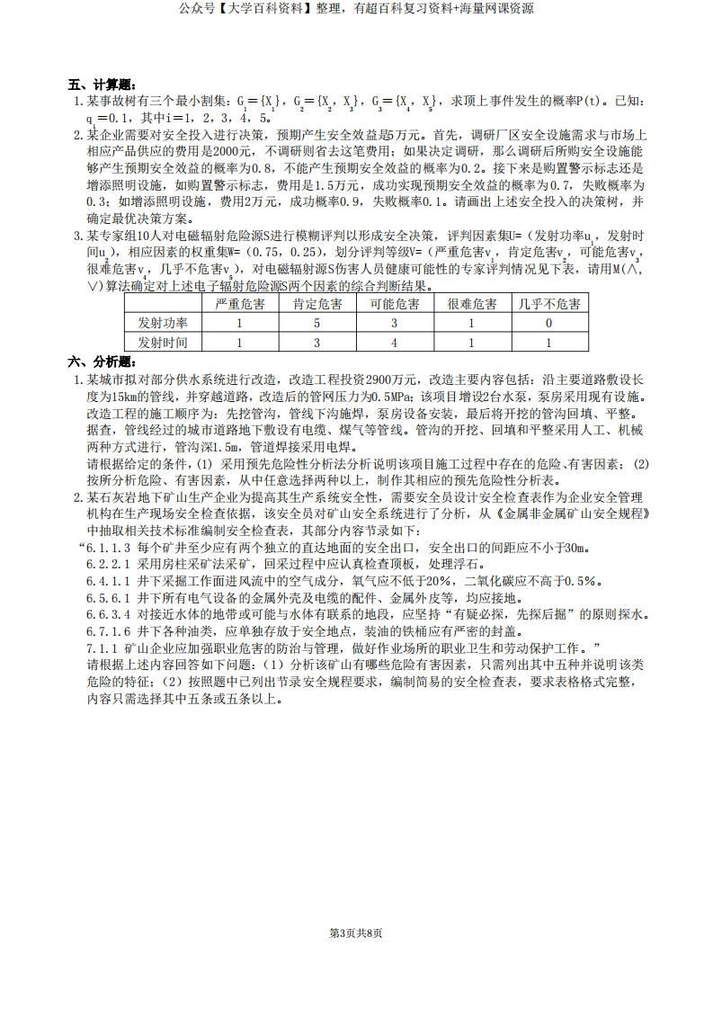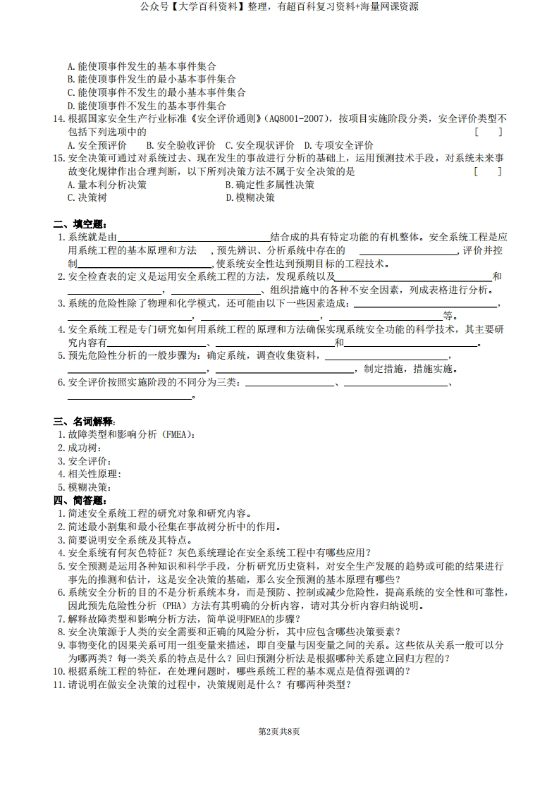 安全系统工程复习题及参考答案猴哥6个月前发布关注私信0.46MB8页08134安全系统工程复习题及参考答案此内容为免费资源,请登录后查看¥0 登录查看免费资源 第1页 / 共8页 第2页 / 共8页 第3页 / 共8页 第4页 / 共8页 第5页 / 共8页 该文档为免费文档,您可直接下载完整版进行阅读 © 版权声明文章版权归作者所有,未经允许请勿转载。THE END《安全系统工程》学习资料合集期末复习 喜欢就支持一下吧点赞34赞赏 分享QQ空间微博QQ好友海报分享复制链接收藏