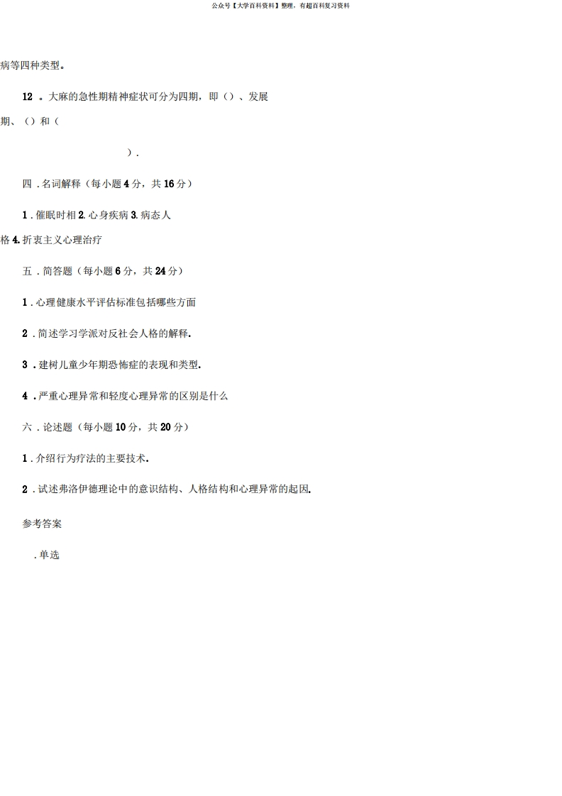 变态心理学试题及答案猴哥6个月前发布关注私信0.88MB26页06128变态心理学试题及答案此内容为免费资源,请登录后查看¥0 登录查看免费资源 第1页 / 共26页 第2页 / 共26页 第3页 / 共26页 第4页 / 共26页 第5页 / 共26页 该文档为免费文档,您可直接下载完整版进行阅读 © 版权声明文章版权归作者所有,未经允许请勿转载。THE END《变态心理学》学习资料合集期末复习 喜欢就支持一下吧点赞28赞赏 分享QQ空间微博QQ好友海报分享复制链接收藏