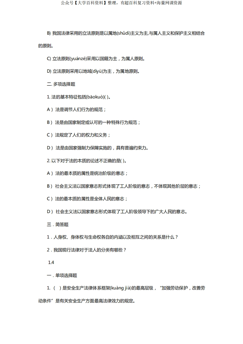 安全法学考试复习题(附答案)(共118页)猴哥6个月前发布关注私信6.27MB112页06935安全法学考试复习题(附答案)(共118页)此内容为免费资源,请登录后查看¥0 登录查看免费资源 第1页 / 共112页 第2页 / 共112页 第3页 / 共112页 第4页 / 共112页 第5页 / 共112页 该文档为免费文档,您可直接下载完整版进行阅读 © 版权声明文章版权归作者所有,未经允许请勿转载。THE END《安全法学》学习资料合集期末复习 喜欢就支持一下吧点赞35赞赏 分享QQ空间微博QQ好友海报分享复制链接收藏