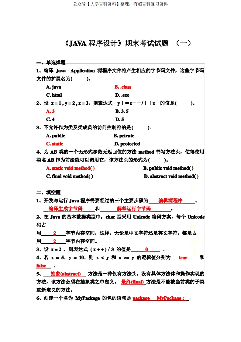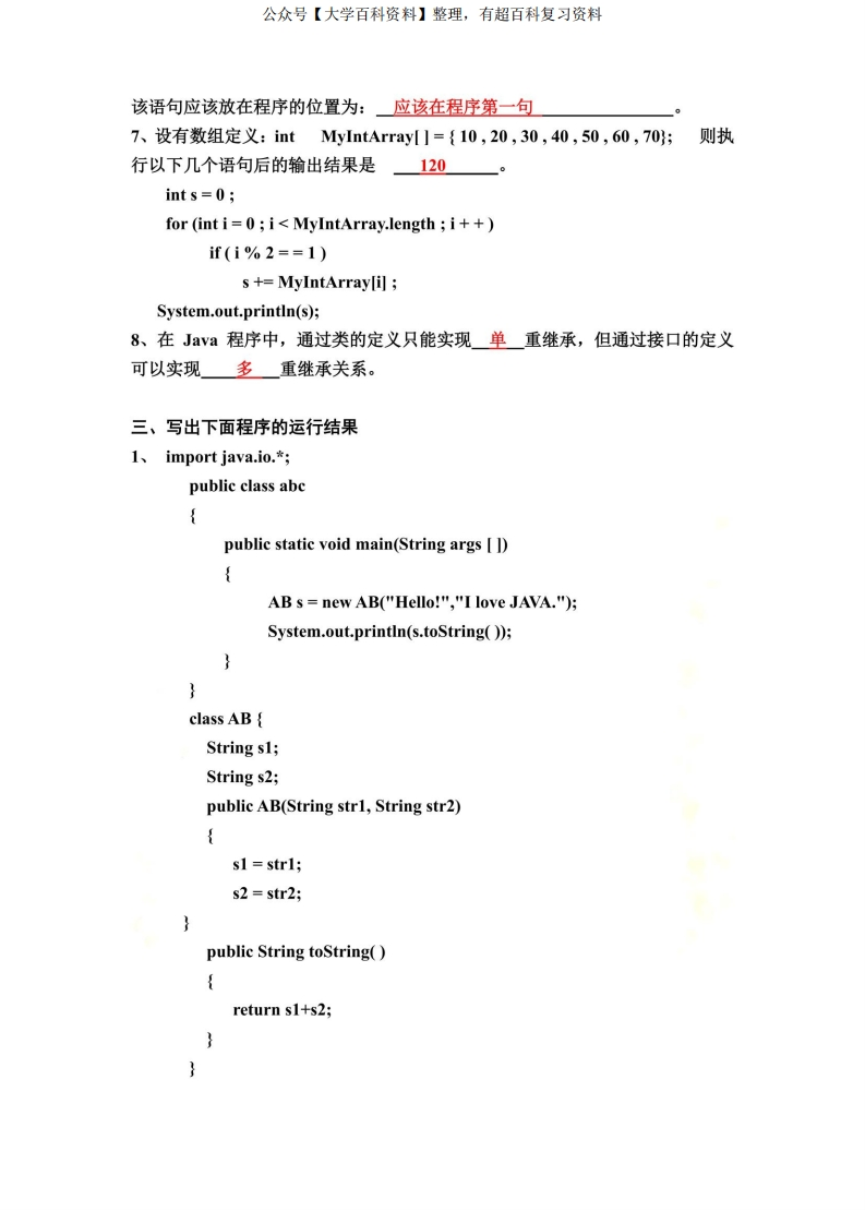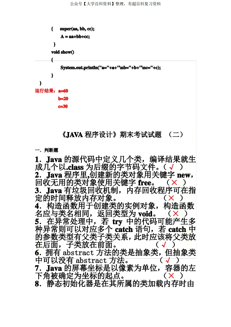 《JAVA程序设计》期末考试试题汇总及答案猴哥6个月前发布关注私信2.87MB48页03846《JAVA程序设计》期末考试试题汇总及答案此内容为免费资源,请登录后查看¥0 登录查看免费资源 第1页 / 共48页 第2页 / 共48页 第3页 / 共48页 第4页 / 共48页 第5页 / 共48页 该文档为免费文档,您可直接下载完整版进行阅读 © 版权声明文章版权归作者所有,未经允许请勿转载。THE END《java》学习资料合集期末复习 喜欢就支持一下吧点赞46赞赏 分享QQ空间微博QQ好友海报分享复制链接收藏