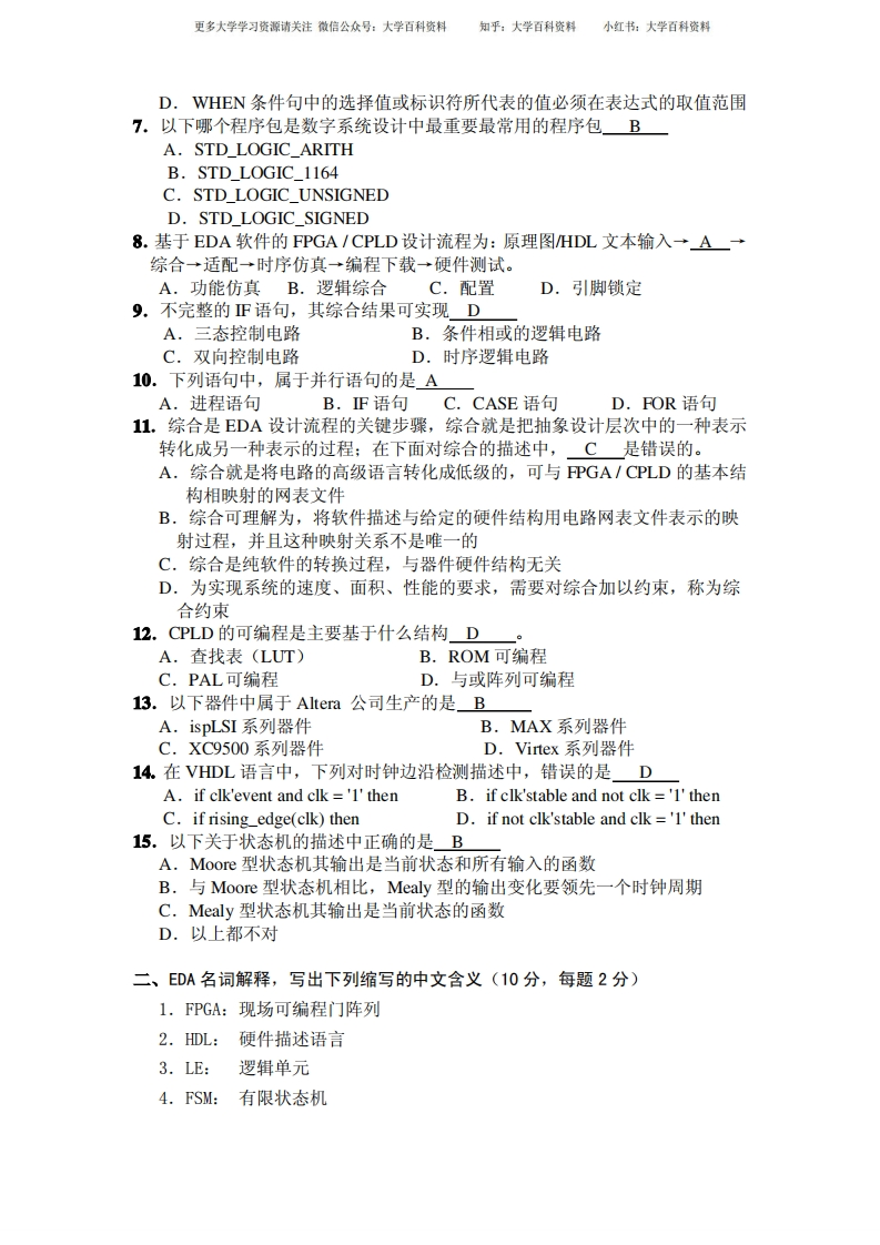 EDA期末必考选择题及答案-学习资源网 - 分享优质学习资料