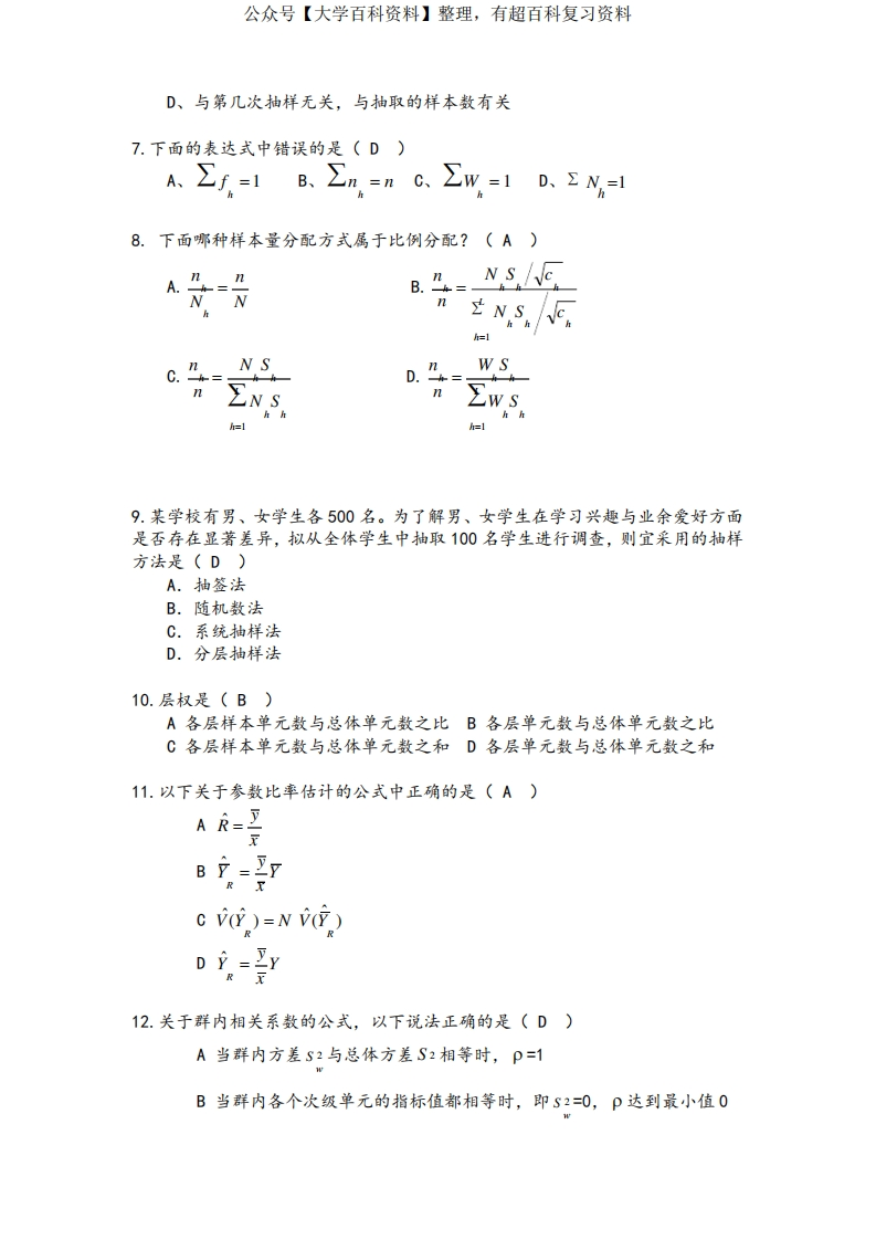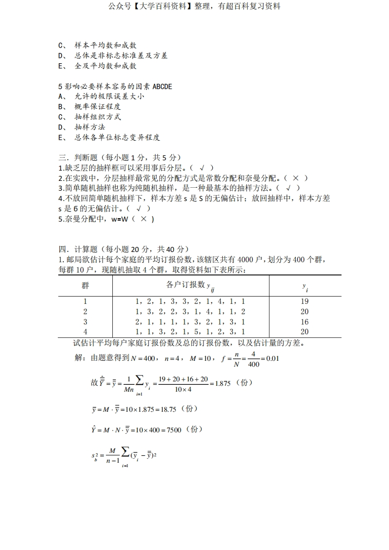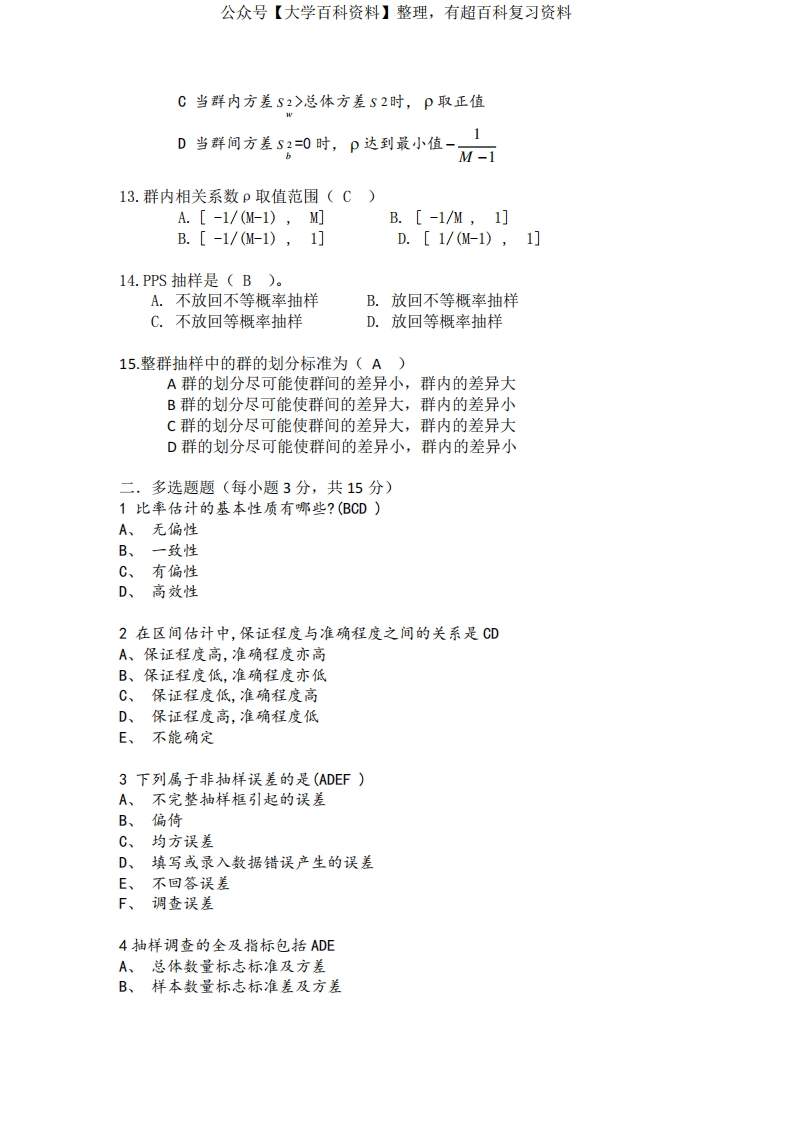 大学《抽样技术》期末考试卷(附详细答案)猴哥6个月前发布关注私信0.38MB7页05563大学《抽样技术》期末考试卷(附详细答案)此内容为免费资源,请登录后查看¥0 登录查看免费资源 第1页 / 共7页 第2页 / 共7页 第3页 / 共7页 第4页 / 共7页 第5页 / 共7页 该文档为免费文档,您可直接下载完整版进行阅读 © 版权声明文章版权归作者所有,未经允许请勿转载。THE END《抽样方法》学习资料合集期末复习 喜欢就支持一下吧点赞63赞赏 分享QQ空间微博QQ好友海报分享复制链接收藏