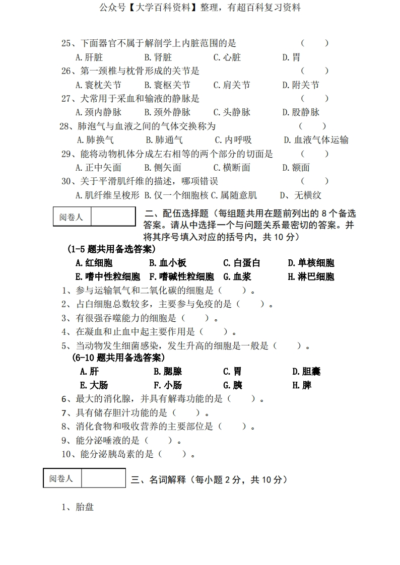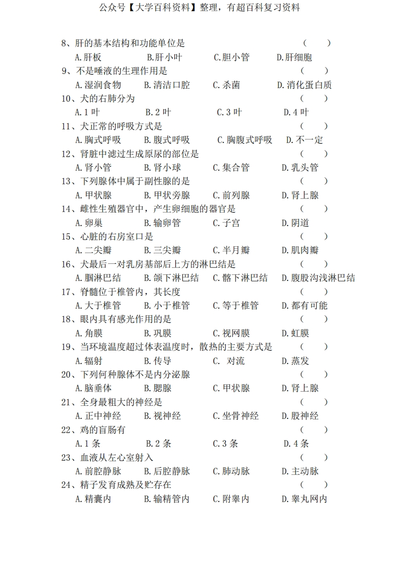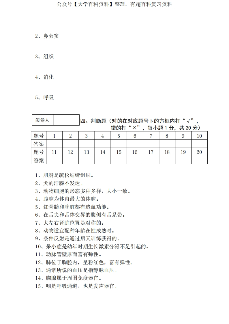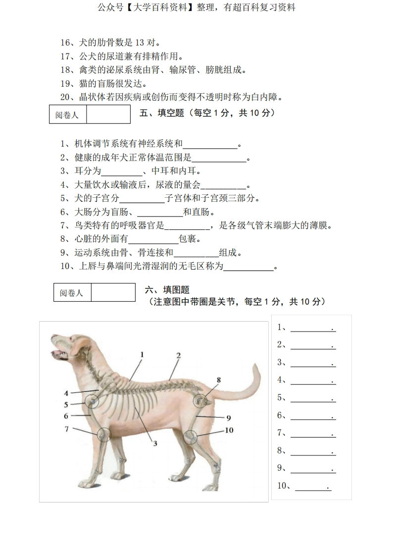 宠物解剖生理试卷B及答案-学习资源网 - 分享优质学习资料