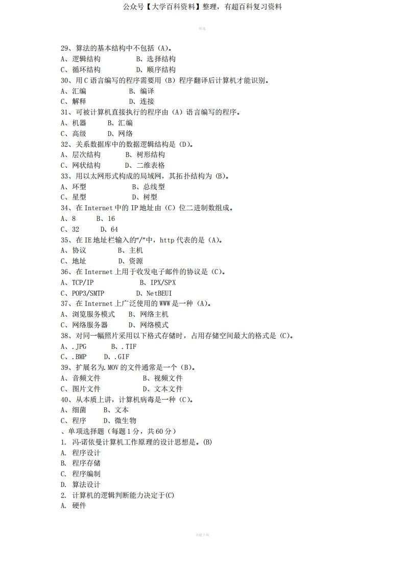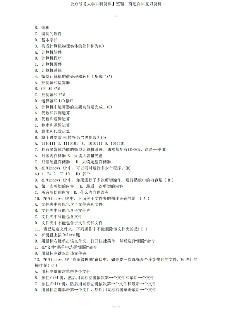大学计算机基础试题及答案完整版猴哥6个月前发布关注私信0.43MB9页09521大学计算机基础试题及答案完整版此内容为免费资源,请登录后查看¥0 登录查看免费资源 第1页 / 共9页 第2页 / 共9页 第3页 / 共9页 第4页 / 共9页 第5页 / 共9页 该文档为免费文档,您可直接下载完整版进行阅读 © 版权声明文章版权归作者所有,未经允许请勿转载。THE END《大学计算机教程》学习资料合集期末复习 喜欢就支持一下吧点赞21赞赏 分享QQ空间微博QQ好友海报分享复制链接收藏