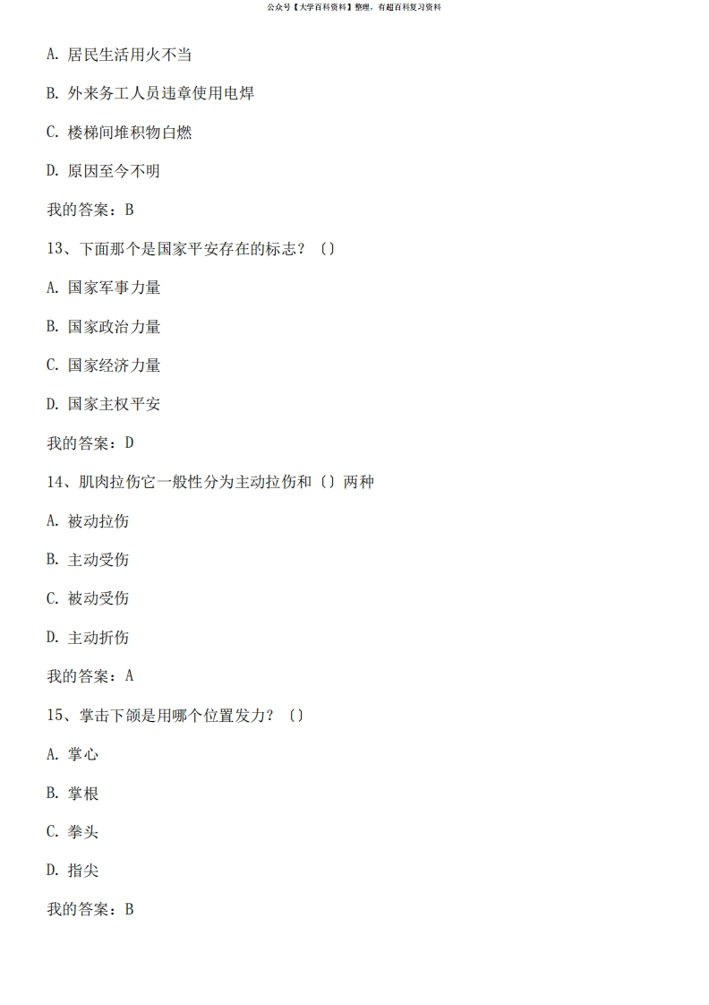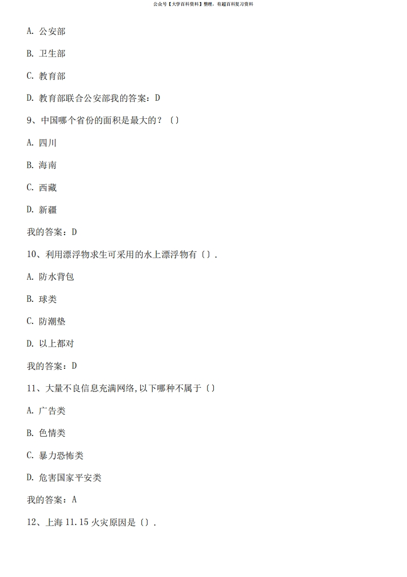 超星尔雅大学生安全教育期末考试答案猴哥6个月前发布关注私信0.51MB24页06239超星尔雅大学生安全教育期末考试答案此内容为免费资源,请登录后查看¥0 登录查看免费资源 第1页 / 共24页 第2页 / 共24页 第3页 / 共24页 第4页 / 共24页 第5页 / 共24页 该文档为免费文档,您可直接下载完整版进行阅读 © 版权声明文章版权归作者所有,未经允许请勿转载。THE END《大学生公共安全教育》学习资料合集期末复习 喜欢就支持一下吧点赞39赞赏 分享QQ空间微博QQ好友海报分享复制链接收藏