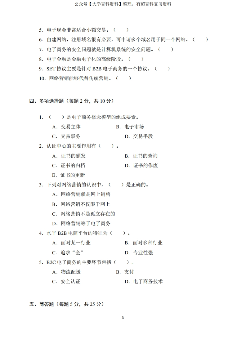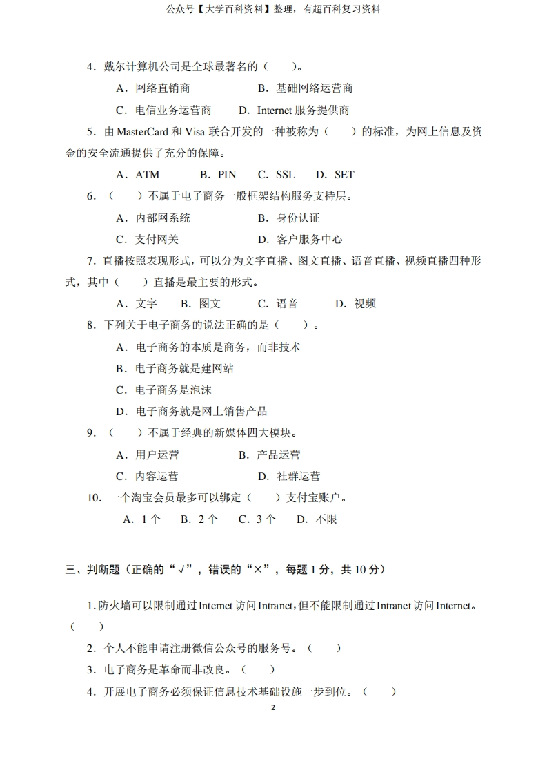 《电子商务概论》(第5版)试卷A卷及答案猴哥6个月前发布关注私信0.50MB10页03140《电子商务概论》(第5版)试卷A卷及答案此内容为免费资源,请登录后查看¥0 登录查看免费资源 第1页 / 共10页 第2页 / 共10页 第3页 / 共10页 第4页 / 共10页 第5页 / 共10页 该文档为免费文档,您可直接下载完整版进行阅读 © 版权声明文章版权归作者所有,未经允许请勿转载。THE END《电子商务概论》学习资料合集期末复习 喜欢就支持一下吧点赞40赞赏 分享QQ空间微博QQ好友海报分享复制链接收藏