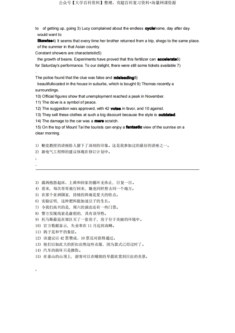 大学英语精读3选词填空期末考试复习版猴哥6个月前发布关注私信0.41MB5页05344大学英语精读3选词填空期末考试复习版此内容为免费资源,请登录后查看¥0 登录查看免费资源 第1页 / 共5页 第2页 / 共5页 第3页 / 共5页 第4页 / 共5页 第5页 / 共5页 已完成全部阅读,共5页 © 版权声明文章版权归作者所有,未经允许请勿转载。THE END《大学英语精读》学习资料合集期末复习 喜欢就支持一下吧点赞44赞赏 分享QQ空间微博QQ好友海报分享复制链接收藏