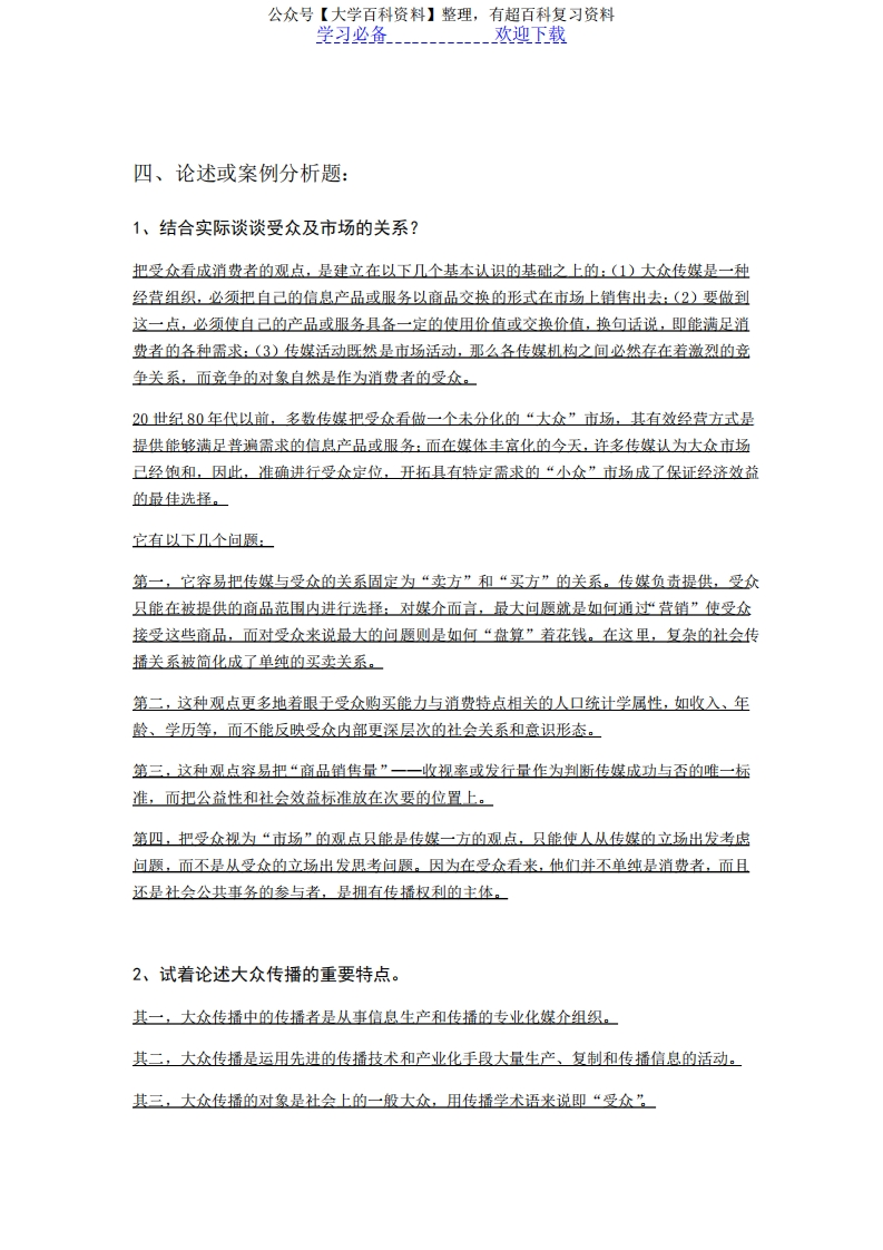 传播学概论知识点笔记猴哥6个月前发布关注私信0.38MB5页09750传播学概论知识点笔记此内容为免费资源,请登录后查看¥0 登录查看免费资源 第1页 / 共5页 第2页 / 共5页 第3页 / 共5页 第4页 / 共5页 第5页 / 共5页 已完成全部阅读,共5页 © 版权声明文章版权归作者所有,未经允许请勿转载。THE END《传播学总论》学习资料合集期末复习 喜欢就支持一下吧点赞50赞赏 分享QQ空间微博QQ好友海报分享复制链接收藏
