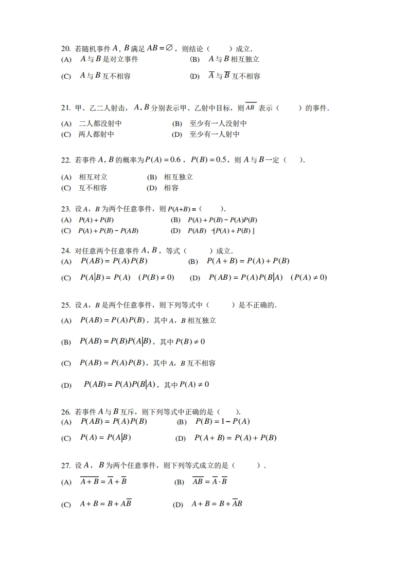 概率论与数理统计题库及答案猴哥6个月前发布关注私信1.75MB49页04640概率论与数理统计题库及答案此内容为免费资源,请登录后查看¥0 登录查看免费资源 第1页 / 共49页 第2页 / 共49页 第3页 / 共49页 第4页 / 共49页 第5页 / 共49页 该文档为免费文档,您可直接下载完整版进行阅读 © 版权声明文章版权归作者所有,未经允许请勿转载。THE END期末复习 喜欢就支持一下吧点赞40赞赏 分享QQ空间微博QQ好友海报分享复制链接收藏