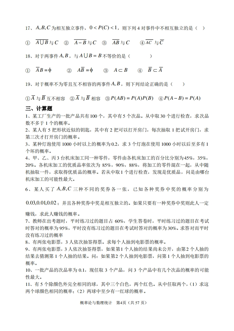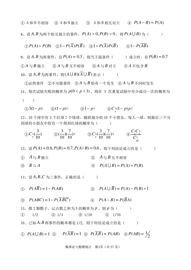 《概率论与数理统计》习题及答案猴哥6个月前发布关注私信2.62MB63页03017《概率论与数理统计》习题及答案此内容为免费资源,请登录后查看¥0 登录查看免费资源 第1页 / 共63页 第2页 / 共63页 第3页 / 共63页 第4页 / 共63页 第5页 / 共63页 该文档为免费文档,您可直接下载完整版进行阅读 © 版权声明文章版权归作者所有,未经允许请勿转载。THE END期末复习 喜欢就支持一下吧点赞17赞赏 分享QQ空间微博QQ好友海报分享复制链接收藏