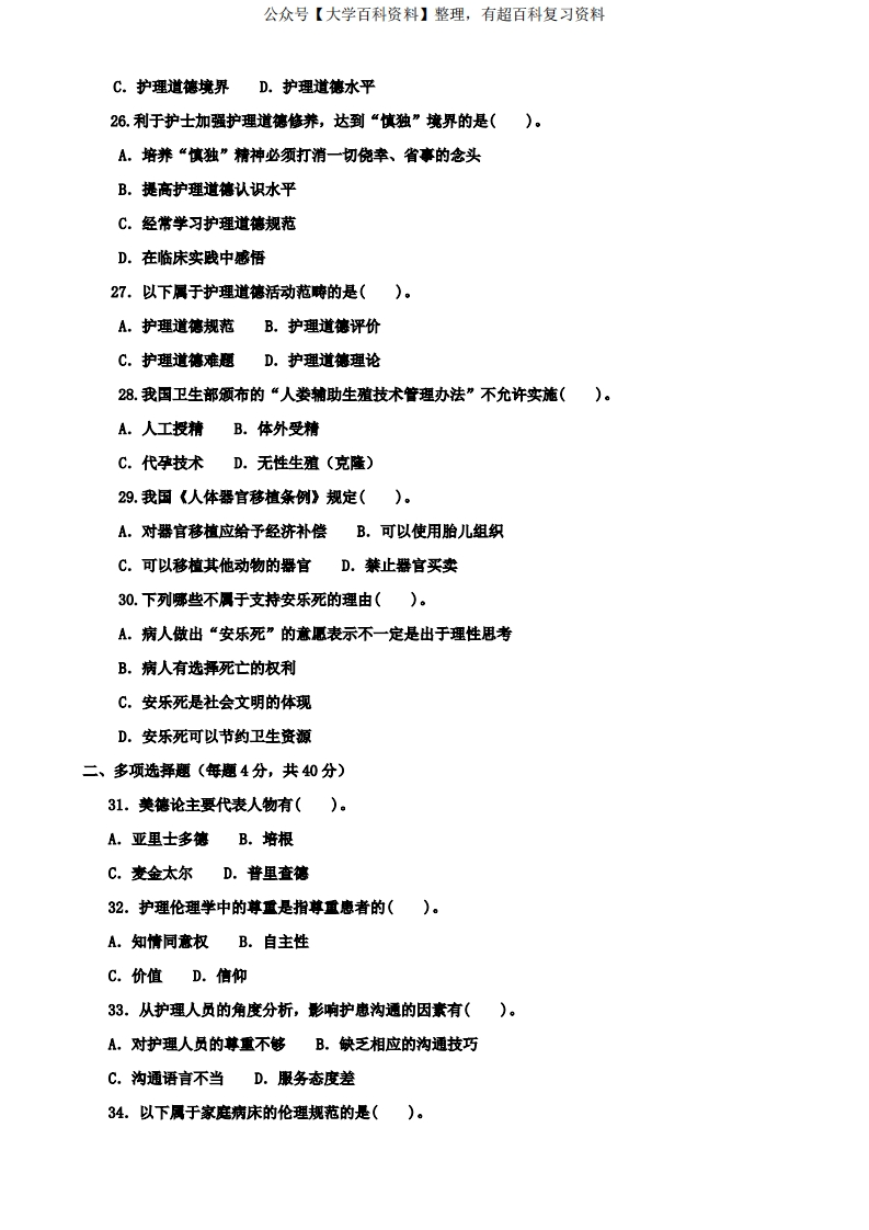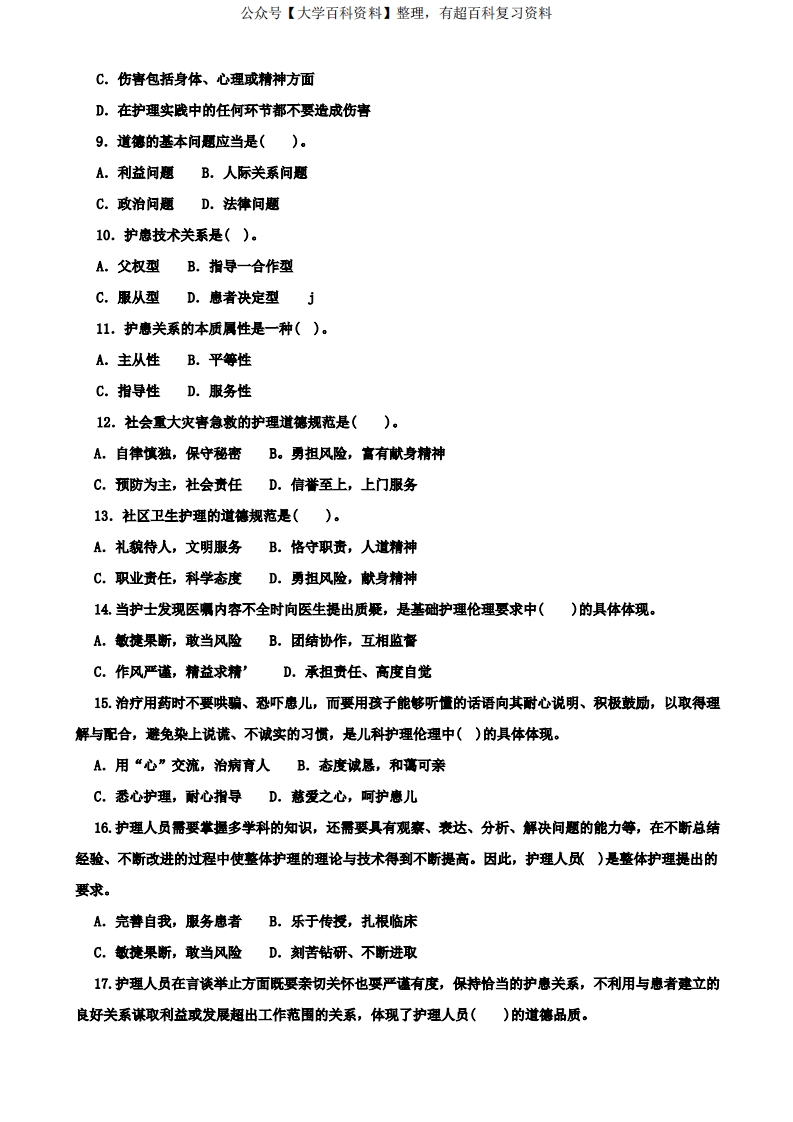 2020-2021本科《护理伦理学》期末试题及答案(试卷号1303)猴哥6个月前发布关注私信0.21MB5页074482020-2021本科《护理伦理学》期末试题及答案(试卷号1303)此内容为免费资源,请登录后查看¥0 登录查看免费资源 第1页 / 共5页 第2页 / 共5页 第3页 / 共5页 第4页 / 共5页 第5页 / 共5页 已完成全部阅读,共5页 © 版权声明文章版权归作者所有,未经允许请勿转载。THE END期末复习 喜欢就支持一下吧点赞48赞赏 分享QQ空间微博QQ好友海报分享复制链接收藏