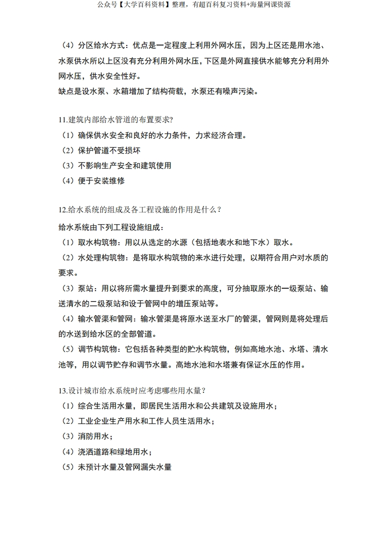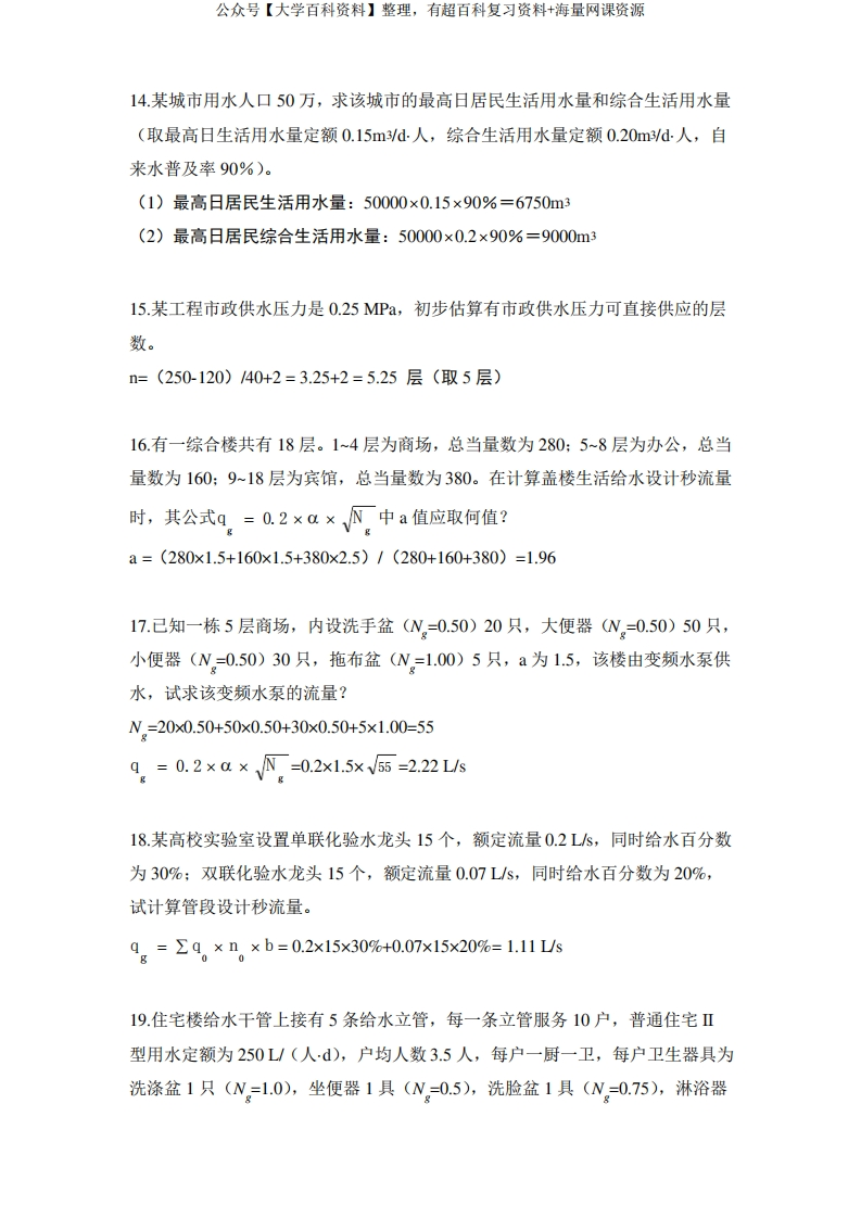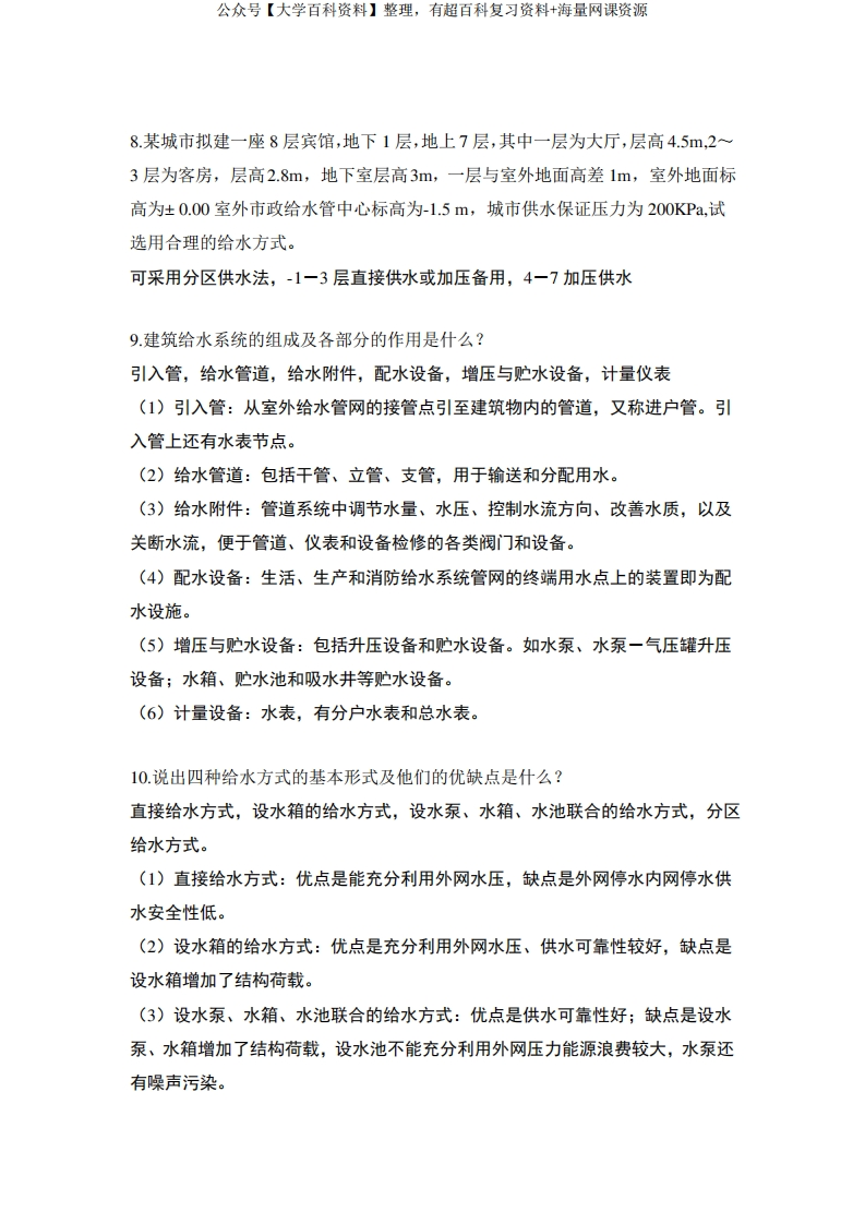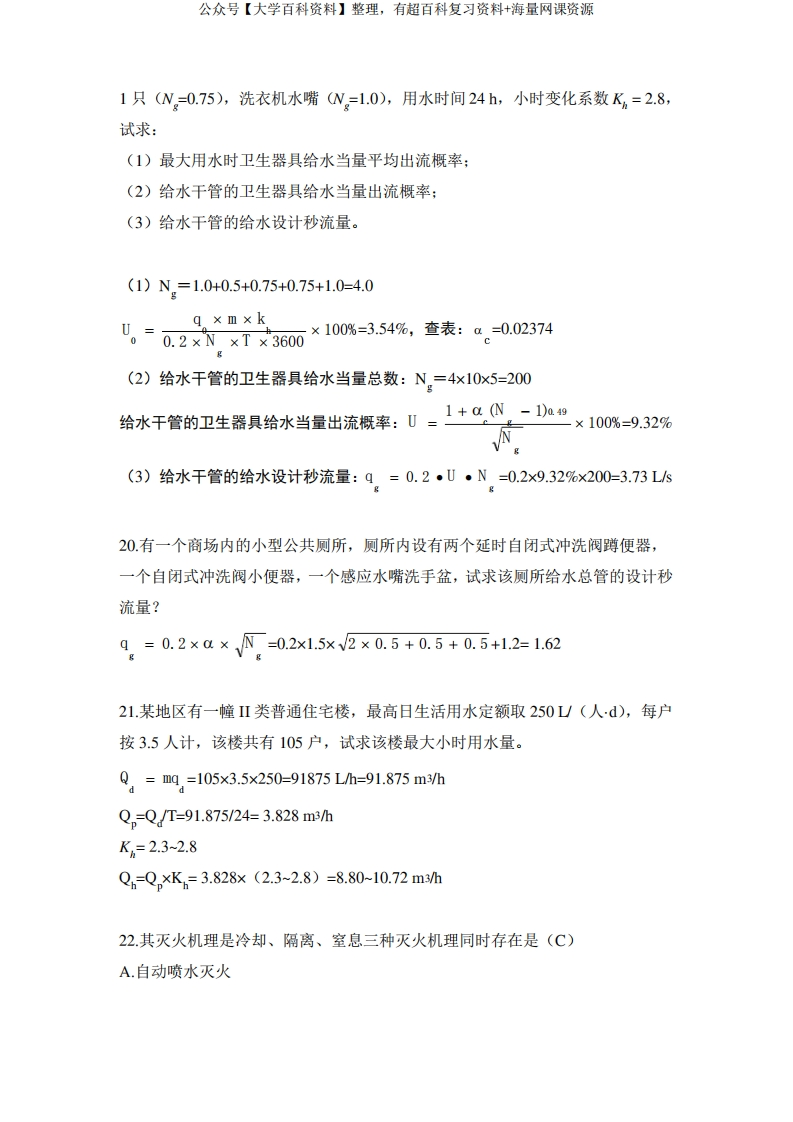 建筑给水排水工程复习题-学习资源网 - 分享优质学习资料