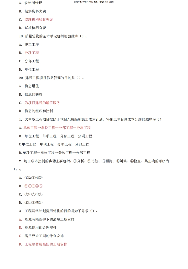 国家开放大学电大专科《建筑工程项目管理》期末试题标准题库及答案猴哥6个月前发布关注私信1.06MB33页03255国家开放大学电大专科《建筑工程项目管理》期末试题标准题库及答案此内容为免费资源,请登录后查看¥0 登录查看免费资源 第1页 / 共33页 第2页 / 共33页 第3页 / 共33页 第4页 / 共33页 第5页 / 共33页 该文档为免费文档,您可直接下载完整版进行阅读 © 版权声明文章版权归作者所有,未经允许请勿转载。THE END期末复习 喜欢就支持一下吧点赞55赞赏 分享QQ空间微博QQ好友海报分享复制链接收藏