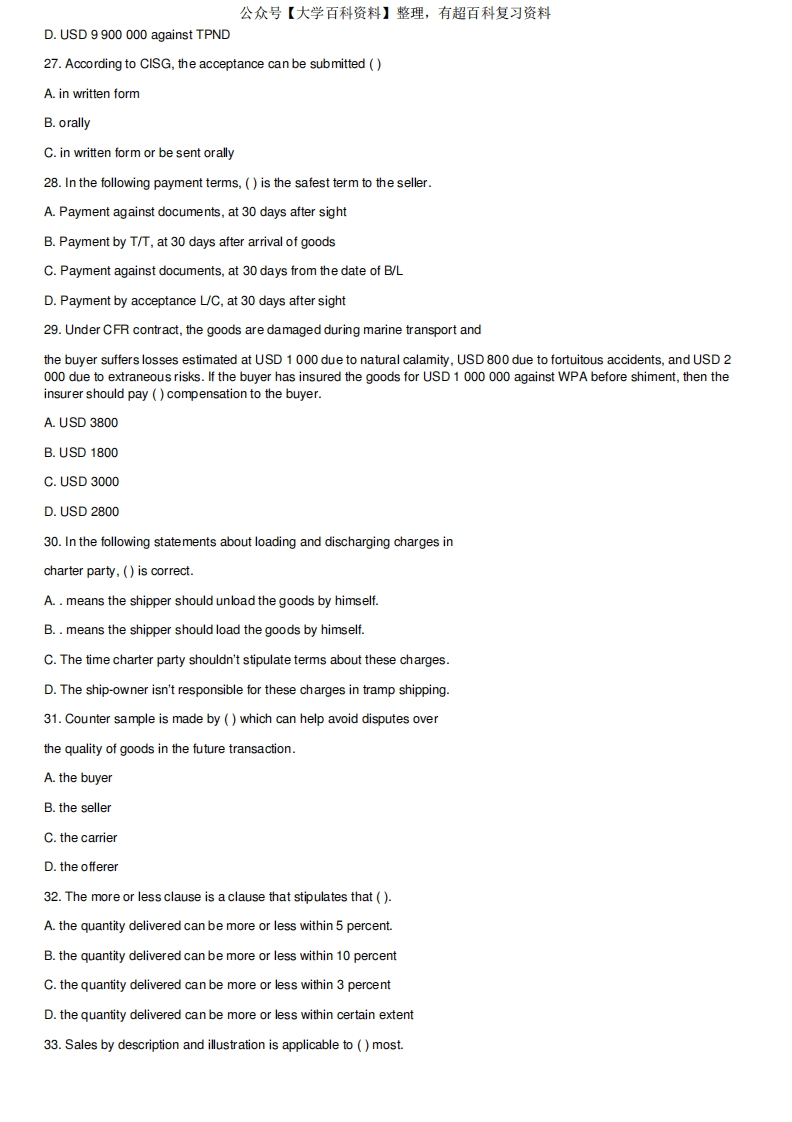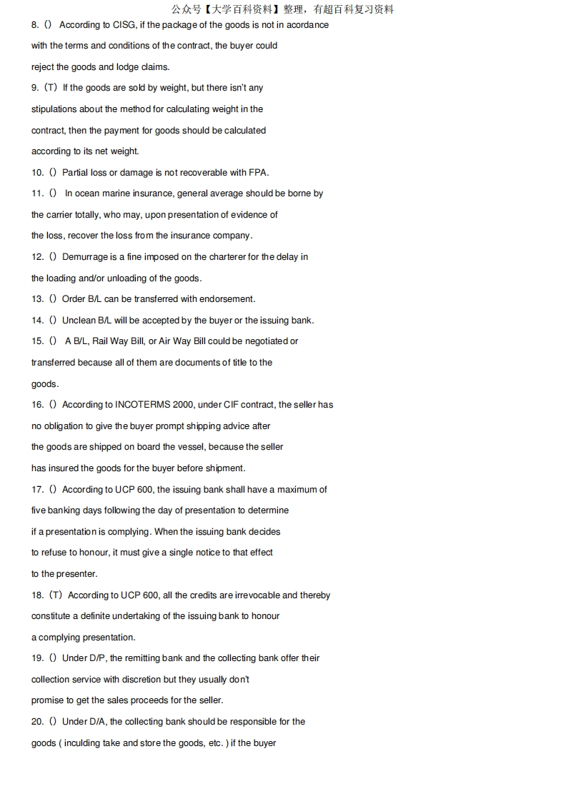 国际贸易实务试卷A卷英文及答案猴哥6个月前发布关注私信0.19MB10页08837国际贸易实务试卷A卷英文及答案此内容为免费资源,请登录后查看¥0 登录查看免费资源 第1页 / 共10页 第2页 / 共10页 第3页 / 共10页 第4页 / 共10页 第5页 / 共10页 该文档为免费文档,您可直接下载完整版进行阅读 © 版权声明文章版权归作者所有,未经允许请勿转载。THE END期末复习 喜欢就支持一下吧点赞37赞赏 分享QQ空间微博QQ好友海报分享复制链接收藏