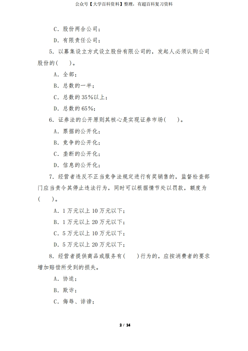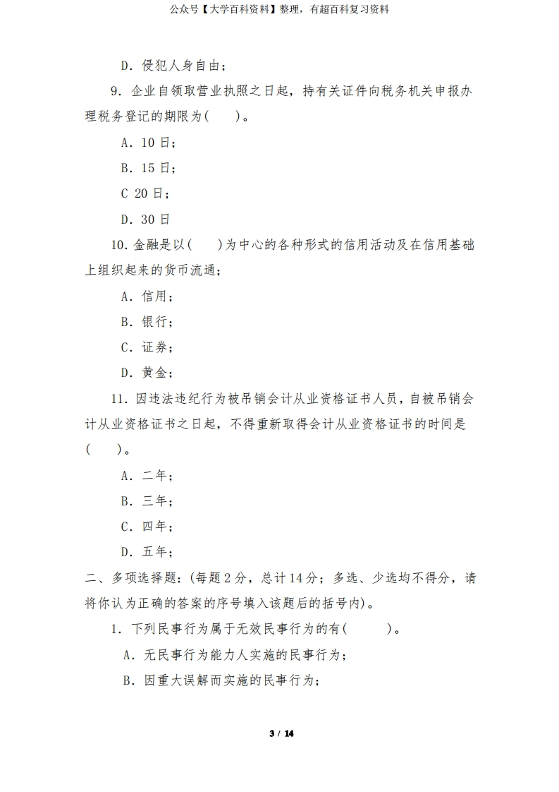 第一学期《会计学专业经济法概论》期末考试题与答案评分标准(试卷A)猴哥6个月前发布关注私信0.41MB14页05020第一学期《会计学专业经济法概论》期末考试题与答案评分标准(试卷A)此内容为免费资源,请登录后查看¥0 登录查看免费资源 第1页 / 共14页 第2页 / 共14页 第3页 / 共14页 第4页 / 共14页 第5页 / 共14页 该文档为免费文档,您可直接下载完整版进行阅读 © 版权声明文章版权归作者所有,未经允许请勿转载。THE END期末复习 喜欢就支持一下吧点赞20赞赏 分享QQ空间微博QQ好友海报分享复制链接收藏