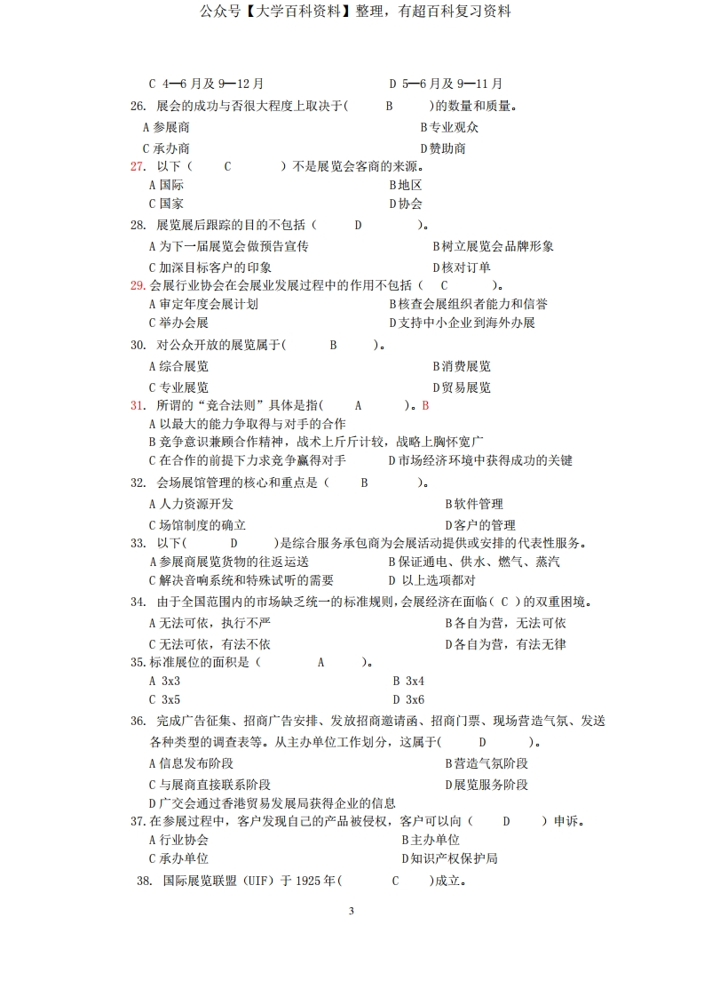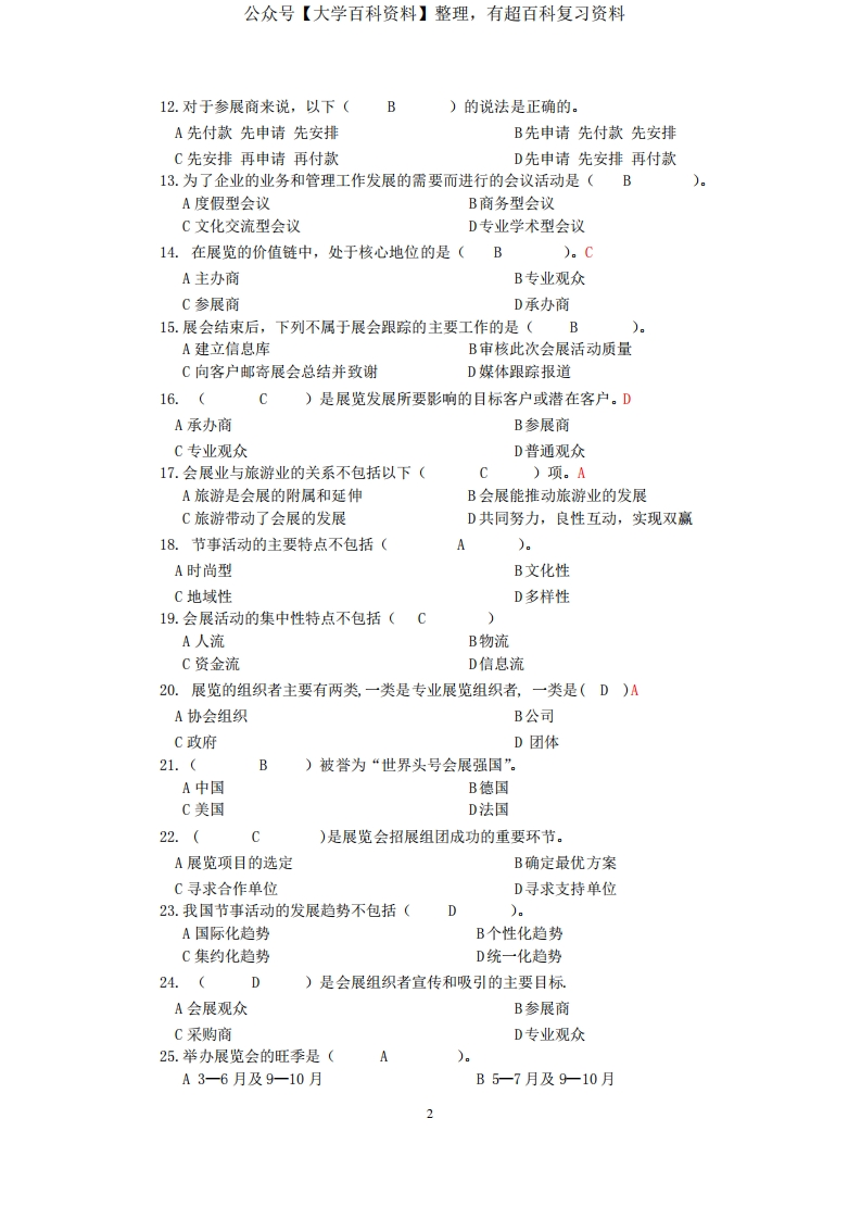 会展概论-复习题【答案版】(1)猴哥6个月前发布关注私信0.54MB11页05650会展概论-复习题【答案版】(1)此内容为免费资源,请登录后查看¥0 登录查看免费资源 第1页 / 共11页 第2页 / 共11页 第3页 / 共11页 第4页 / 共11页 第5页 / 共11页 该文档为免费文档,您可直接下载完整版进行阅读 © 版权声明文章版权归作者所有,未经允许请勿转载。THE END期末复习 喜欢就支持一下吧点赞50赞赏 分享QQ空间微博QQ好友海报分享复制链接收藏