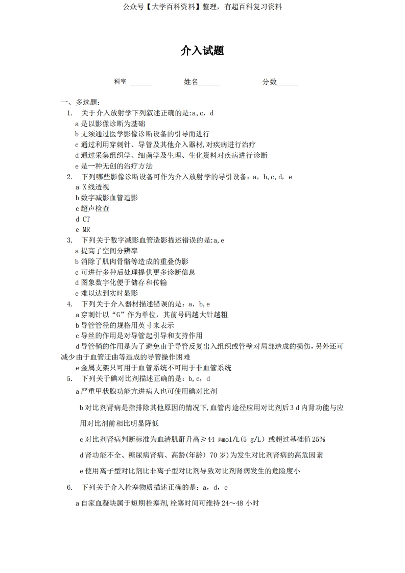 介入放射学考试题4答案-学习资源网 - 分享优质学习资料