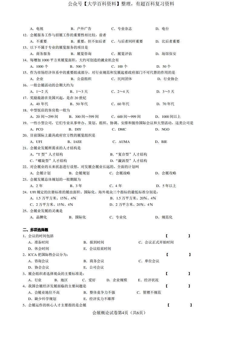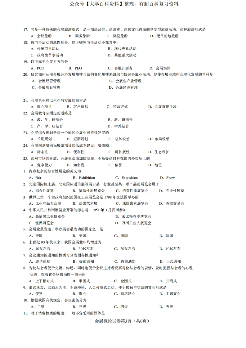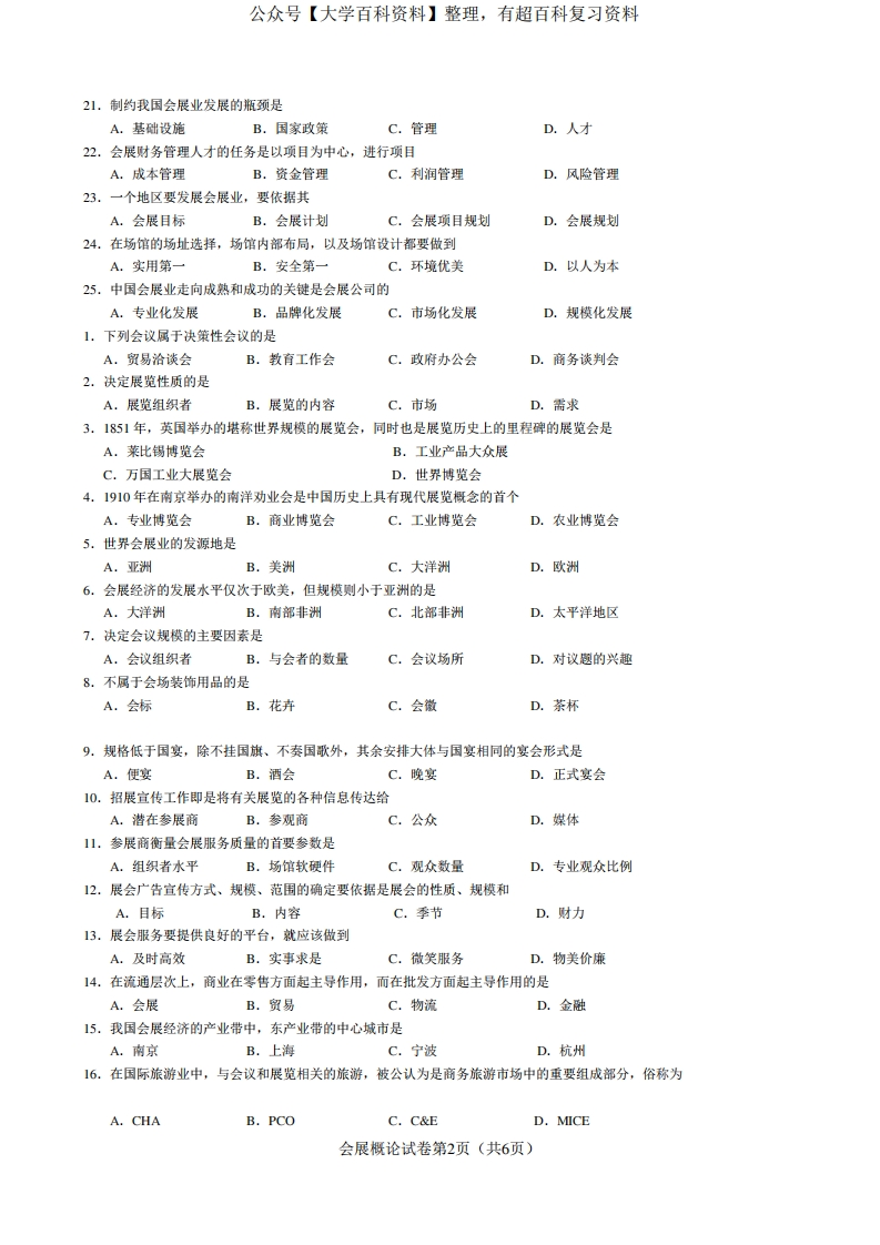 会展概论-试卷猴哥6个月前发布关注私信0.35MB6页05814会展概论-试卷此内容为免费资源,请登录后查看¥0 登录查看免费资源 第1页 / 共6页 第2页 / 共6页 第3页 / 共6页 第4页 / 共6页 第5页 / 共6页 该文档为免费文档,您可直接下载完整版进行阅读 © 版权声明文章版权归作者所有,未经允许请勿转载。THE END期末复习 喜欢就支持一下吧点赞14赞赏 分享QQ空间微博QQ好友海报分享复制链接收藏