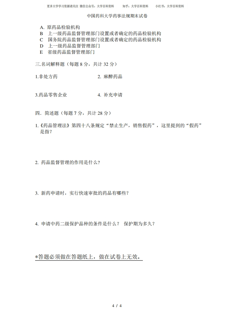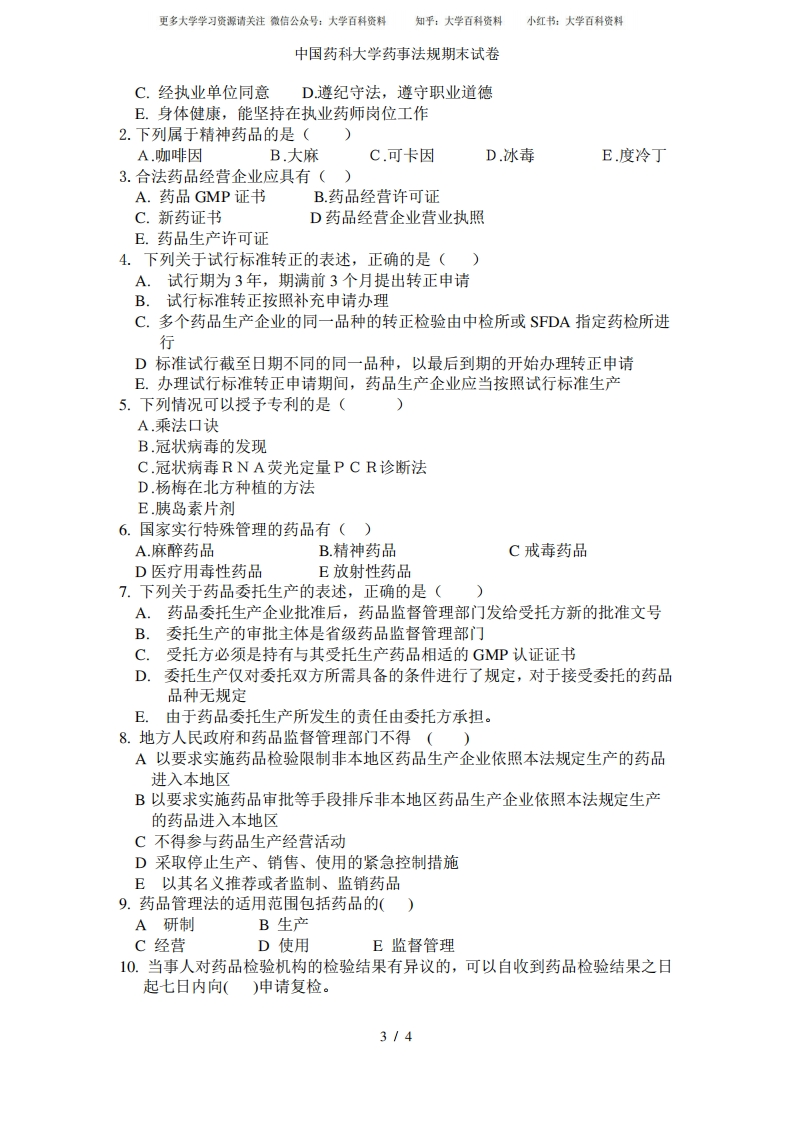 中国药科大学药事法规期末试卷猴哥6个月前发布关注私信0.20MB4页06163中国药科大学药事法规期末试卷此内容为免费资源,请登录后查看¥0 登录查看免费资源 第1页 / 共4页 第2页 / 共4页 第3页 / 共4页 第4页 / 共4页 已完成全部阅读,共4页 © 版权声明文章版权归作者所有,未经允许请勿转载。THE END《中国药科大学》期中期末历年真题期末试卷 喜欢就支持一下吧点赞63赞赏 分享QQ空间微博QQ好友海报分享复制链接收藏