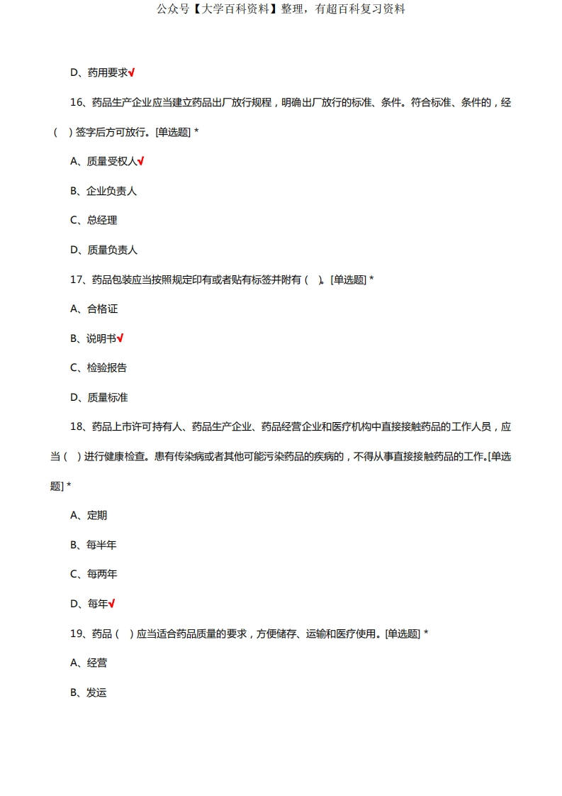 药事法规基础知识考核试题题库及答案猴哥6个月前发布关注私信1.54MB27页07965药事法规基础知识考核试题题库及答案此内容为免费资源,请登录后查看¥0 登录查看免费资源 第1页 / 共27页 第2页 / 共27页 第3页 / 共27页 第4页 / 共27页 第5页 / 共27页 该文档为免费文档,您可直接下载完整版进行阅读 © 版权声明文章版权归作者所有,未经允许请勿转载。THE END期末复习 喜欢就支持一下吧点赞65赞赏 分享QQ空间微博QQ好友海报分享复制链接收藏