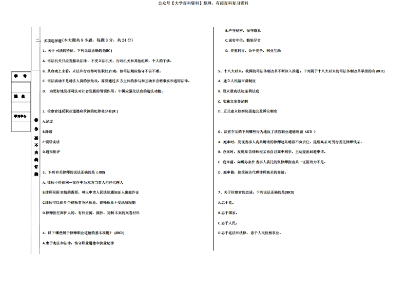 4、开放大学2023年期末考试法律职业伦理试题(答案)猴哥6个月前发布关注私信0.32MB5页038514、开放大学2023年期末考试法律职业伦理试题(答案)此内容为免费资源,请登录后查看¥0 登录查看免费资源 第1页 / 共5页 第2页 / 共5页 第3页 / 共5页 第4页 / 共5页 第5页 / 共5页 已完成全部阅读,共5页 © 版权声明文章版权归作者所有,未经允许请勿转载。THE END期末复习 喜欢就支持一下吧点赞51赞赏 分享QQ空间微博QQ好友海报分享复制链接收藏