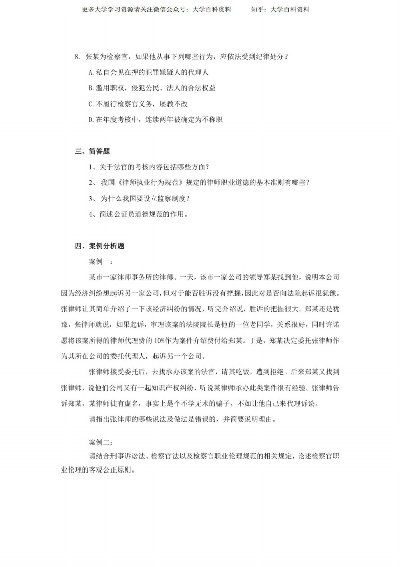 《法律职业伦理》试卷及答案猴哥6个月前发布关注私信2.07MB11页05166《法律职业伦理》试卷及答案此内容为免费资源,请登录后查看¥0 登录查看免费资源 第1页 / 共11页 第2页 / 共11页 第3页 / 共11页 第4页 / 共11页 第5页 / 共11页 该文档为免费文档,您可直接下载完整版进行阅读 © 版权声明文章版权归作者所有,未经允许请勿转载。THE END期末复习 喜欢就支持一下吧点赞66赞赏 分享QQ空间微博QQ好友海报分享复制链接收藏