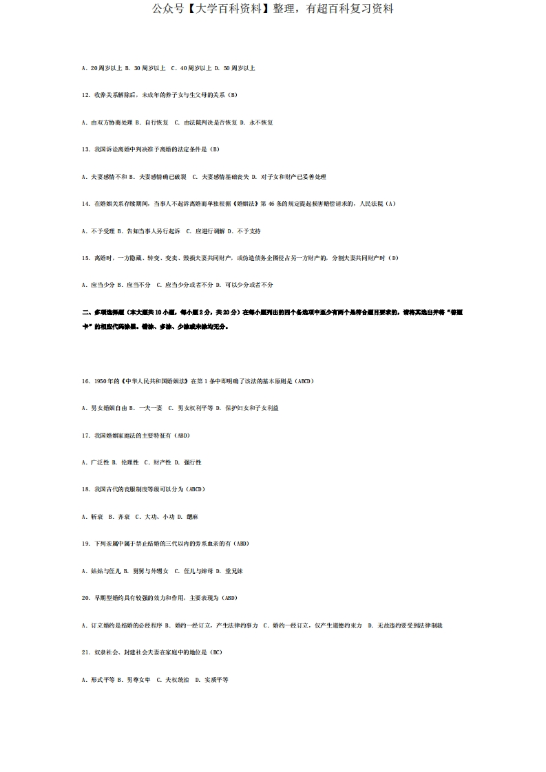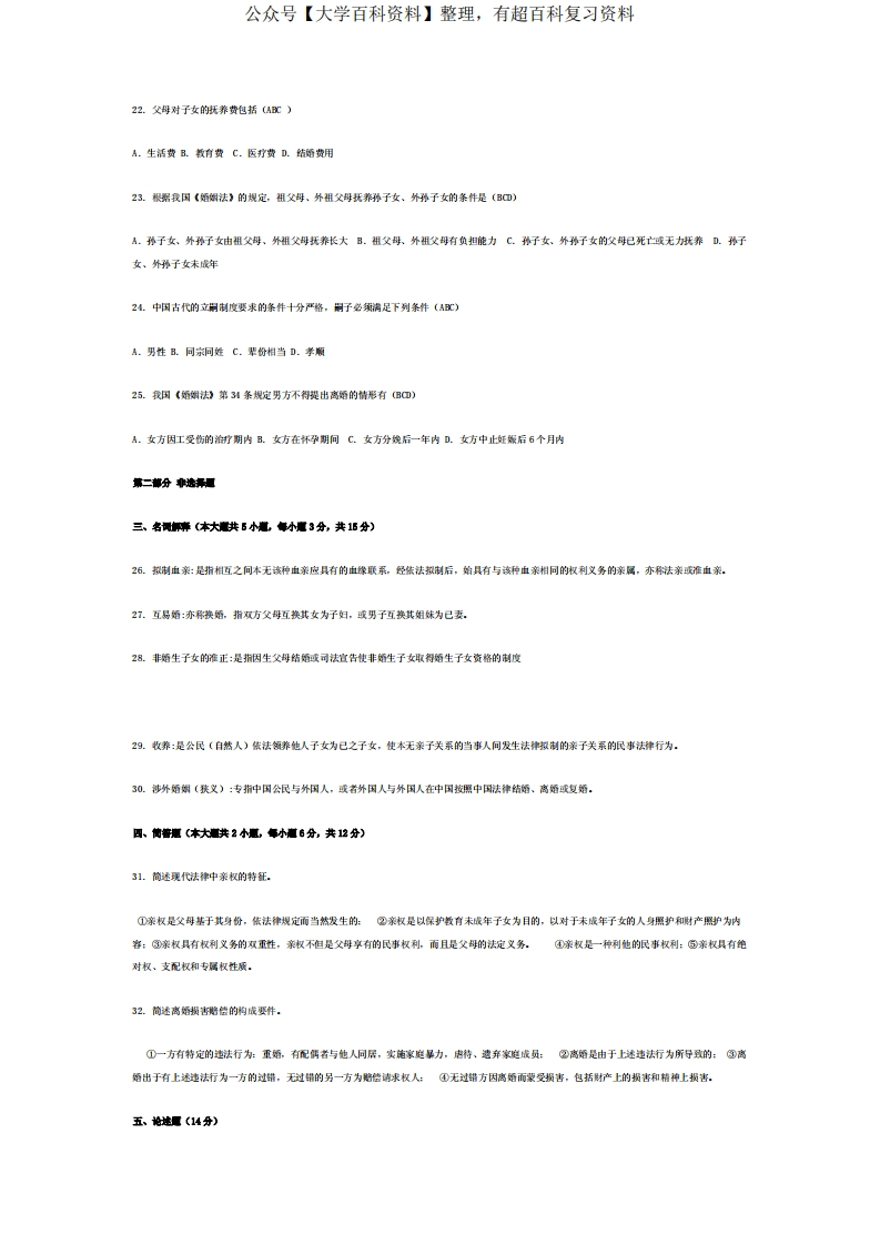婚姻家庭法期末考试试卷-学习资源网 - 分享优质学习资料