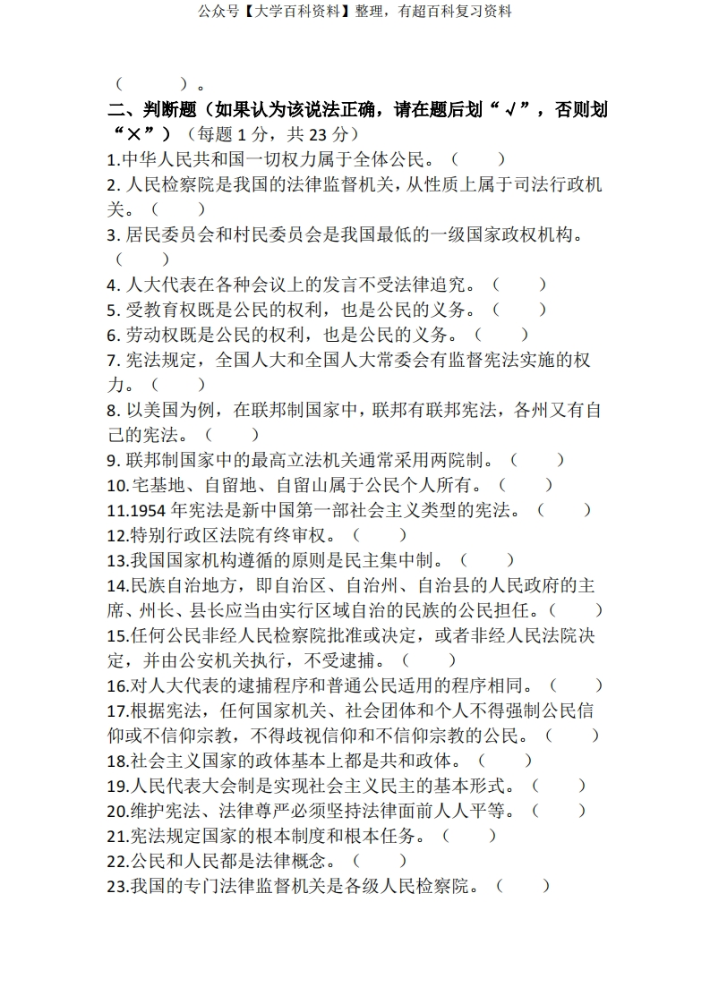 宪法考试试题(附答案)猴哥6个月前发布关注私信0.41MB10页04446宪法考试试题(附答案)此内容为免费资源,请登录后查看¥0 登录查看免费资源 第1页 / 共10页 第2页 / 共10页 第3页 / 共10页 该文档为免费文档,您可直接下载完整版进行阅读 © 版权声明文章版权归作者所有,未经允许请勿转载。THE END期末复习 喜欢就支持一下吧点赞46赞赏 分享QQ空间微博QQ好友海报分享复制链接收藏