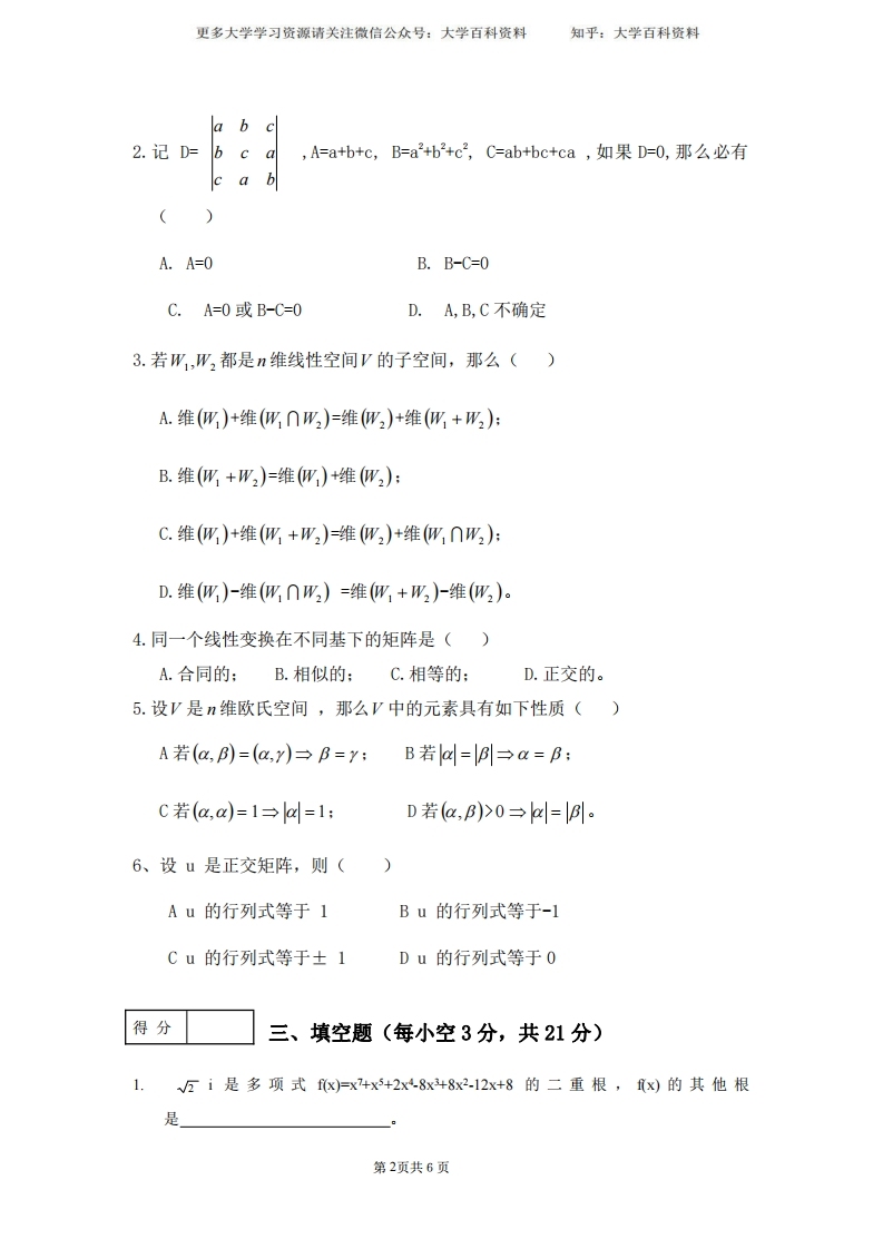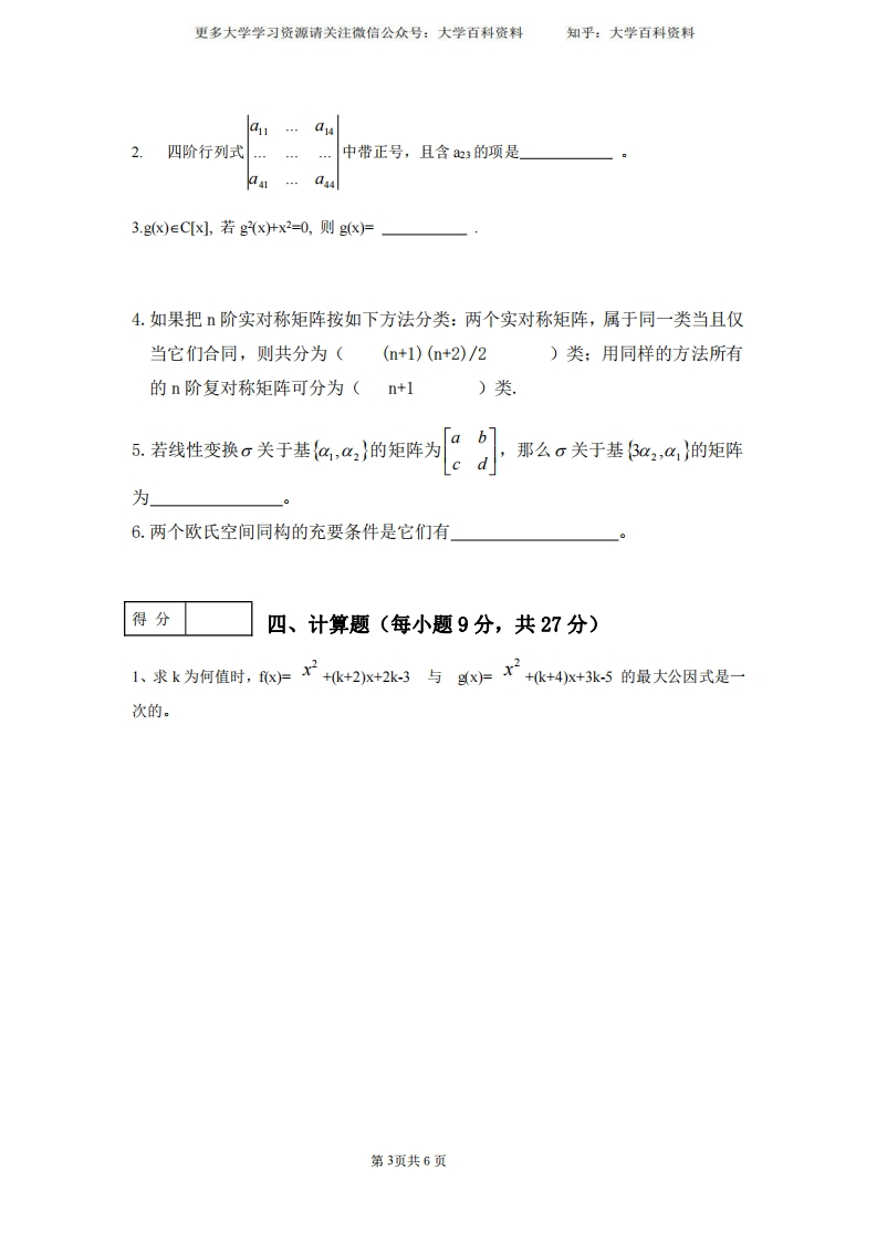 (完整word版)高等代数期末试卷猴哥6个月前发布关注私信0.20MB10页06519(完整word版)高等代数期末试卷此内容为免费资源,请登录后查看¥0 登录查看免费资源 第1页 / 共10页 第2页 / 共10页 第3页 / 共10页 该文档为免费文档,您可直接下载完整版进行阅读 © 版权声明文章版权归作者所有,未经允许请勿转载。THE END期末复习 喜欢就支持一下吧点赞19赞赏 分享QQ空间微博QQ好友海报分享复制链接收藏