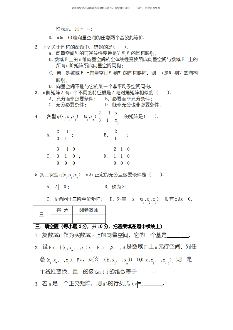 高等代数期末复习试题猴哥6个月前发布关注私信0.12MB10页09226高等代数期末复习试题此内容为免费资源,请登录后查看¥0 登录查看免费资源 第1页 / 共10页 第2页 / 共10页 第3页 / 共10页 该文档为免费文档,您可直接下载完整版进行阅读 © 版权声明文章版权归作者所有,未经允许请勿转载。THE END期末复习 喜欢就支持一下吧点赞26赞赏 分享QQ空间微博QQ好友海报分享复制链接收藏