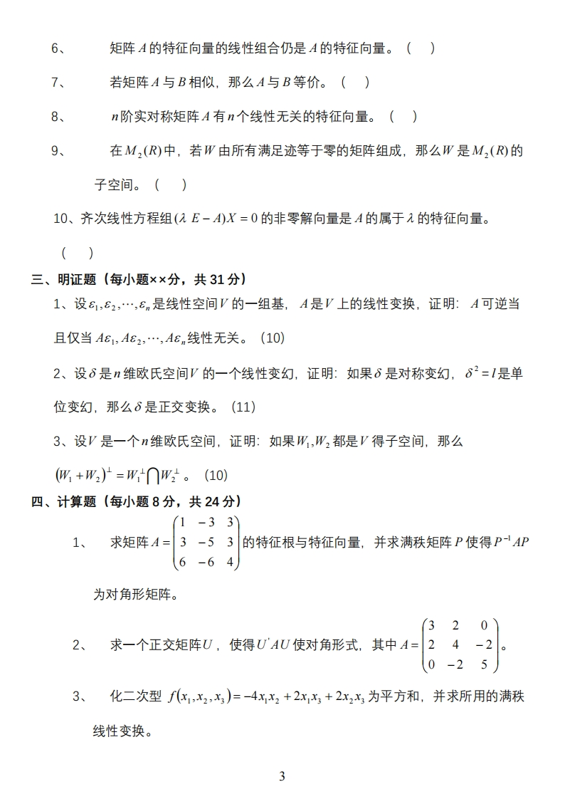高等代数试题猴哥6个月前发布关注私信0.32MB7页04835高等代数试题此内容为免费资源,请登录后查看¥0 登录查看免费资源 第1页 / 共7页 第2页 / 共7页 第3页 / 共7页 该文档为免费文档,您可直接下载完整版进行阅读 © 版权声明文章版权归作者所有,未经允许请勿转载。THE END期末复习 喜欢就支持一下吧点赞35赞赏 分享QQ空间微博QQ好友海报分享复制链接收藏