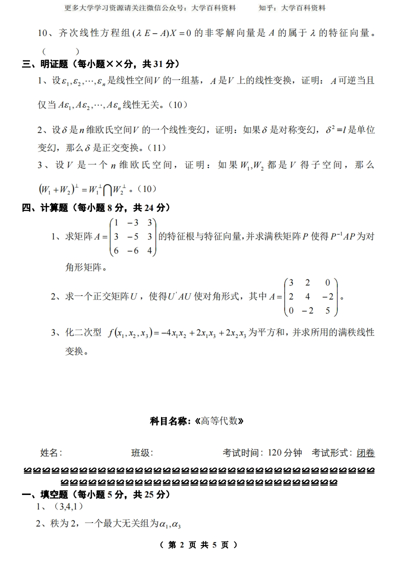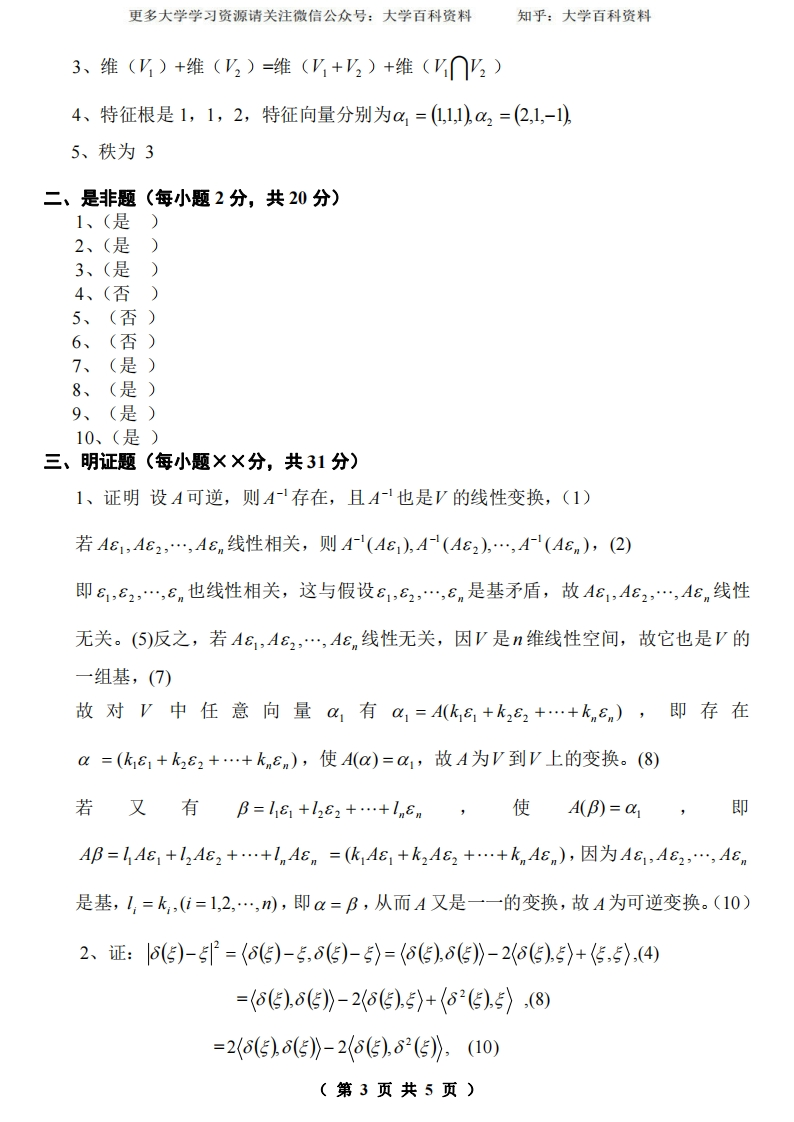 高等代数试题2(附答案)猴哥6个月前发布关注私信0.24MB5页06261高等代数试题2(附答案)此内容为免费资源,请登录后查看¥0 登录查看免费资源 第1页 / 共5页 第2页 / 共5页 第3页 / 共5页 该文档为免费文档,您可直接下载完整版进行阅读 © 版权声明文章版权归作者所有,未经允许请勿转载。THE END期末复习 喜欢就支持一下吧点赞61赞赏 分享QQ空间微博QQ好友海报分享复制链接收藏