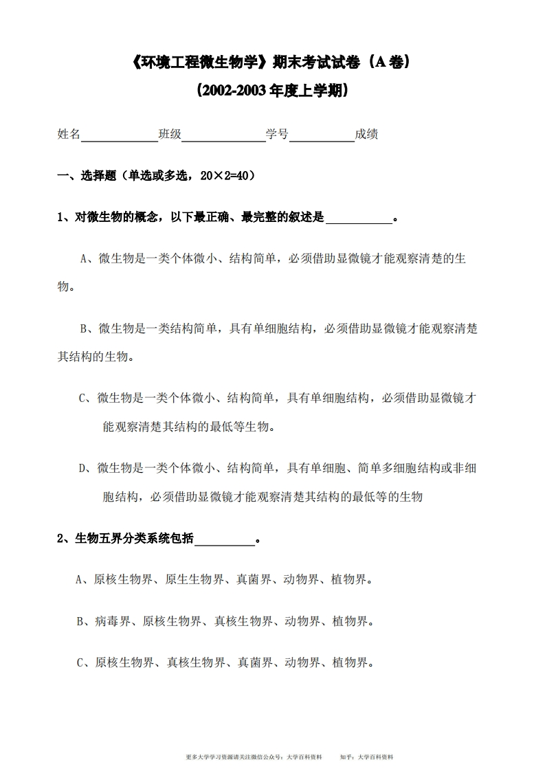 环境工程微生物学期末考试试卷A卷猴哥6个月前发布关注私信0.50MB11页04015环境工程微生物学期末考试试卷A卷此内容为免费资源,请登录后查看¥0 登录查看免费资源 第1页 / 共11页 第2页 / 共11页 第3页 / 共11页 该文档为免费文档,您可直接下载完整版进行阅读 © 版权声明文章版权归作者所有,未经允许请勿转载。THE END期末复习 喜欢就支持一下吧点赞15赞赏 分享QQ空间微博QQ好友海报分享复制链接收藏