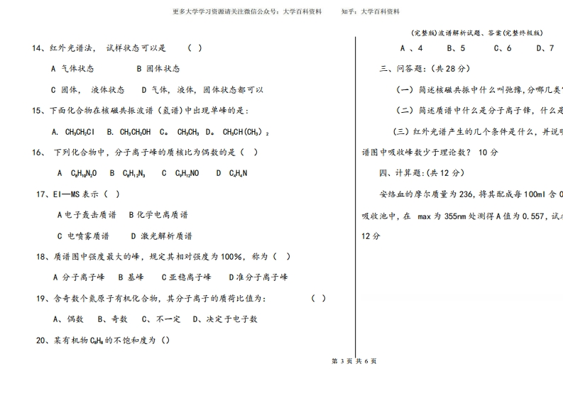 (完整版)波谱解析试题、答案(完整终极版)猴哥6个月前发布关注私信0.22MB6页07962(完整版)波谱解析试题、答案(完整终极版)此内容为免费资源,请登录后查看¥0 登录查看免费资源 第1页 / 共6页 第2页 / 共6页 第3页 / 共6页 该文档为免费文档,您可直接下载完整版进行阅读 © 版权声明文章版权归作者所有,未经允许请勿转载。THE END期末复习 喜欢就支持一下吧点赞62赞赏 分享QQ空间微博QQ好友海报分享复制链接收藏