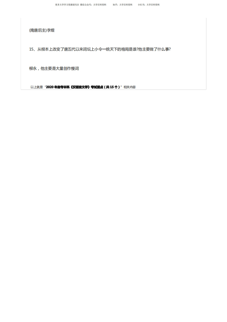 自考本科《汉语言文学》考试重点猴哥6个月前发布关注私信0.15MB3页07010自考本科《汉语言文学》考试重点此内容为免费资源,请登录后查看¥0 登录查看免费资源 第1页 / 共3页 第2页 / 共3页 第3页 / 共3页 已完成全部阅读,共3页 © 版权声明文章版权归作者所有,未经允许请勿转载。THE END期末复习 喜欢就支持一下吧点赞10赞赏 分享QQ空间微博QQ好友海报分享复制链接收藏